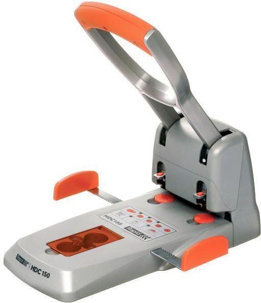 Dziurkacz Supreme HDC150/2 — wydajny, mocny i ergonomiczny Dziurkacz Supreme HDC150/2 to urządzenie klasy Heavy Duty, stworzone do intensywnej pracy w biurach, szkołach czy drukarniach. Dzięki precyzyjnym ostrzom, ergonomicznym rozwiązaniom i możliwości obsługi dużego pliku kartek doskonale sprawdzi się jako kluczowy element wyposażenia biurowego. Dziurkacza RAPID Supreme HDC150/2 - zalety Możliwość dziurkowania aż 150 kartek (80 g/m²) za jednym razem, co oszczędza czas i wysiłek. Technologia redukcji siły nacisku („power-saving hollow punching”), dzięki której obsługa jest łatwiejsza nawet przy dużych obciążeniach. Wymienialne dyski i ostrza — zapewniają dłuższą żywotność urządzenia (części dostępne osobno). Ergonomiczna dźwignia pokryta gumą — bardziej komfortowy chwyt i mniejsze zmęczenie dłoni. Centrujący ogranicznik papieru dla precyzyjnego ustawiania arkuszy przed dziurkowaniem. Łatwy do opróżnienia pojemnik na odpady (konfetti) — szybkie czyszczenie bez dużych zanieczyszczeń. 5 lat gwarancji od producenta, co świadczy o zaufaniu do trwałości urządzenia. Dziurkacz Rapid HDC150 - specyfikacja techniczna Kod produktu: 23000600 Kolor: srebrny / pomarańczowy Materiał: tworzywo ABS + elementy metalowe Wymiary: ok. 142 × 155 × 345 mm Liczba dziurek: 2 Średnica dziurek: 6 mm Rozstaw dziurek (odległość między nimi): 80 mm Maksymalna liczba kartek: 150 kartek (80 g/m²) Zakres formatów: od A6 (pionowo) do A3 (poziomo) Obsługiwane mechanicznie (bez napędu elektrycznego) Brak blokady ramienia Ostrza/elementy przecinające: wymienialne (dyski i ostrza dostępne osobno) Ogranicznik papieru (centrujący) Pojemnik na „konfetti” łatwy do opróżnienia Waga: ok. 3 kg Gwarancja producenta: 5 lat
