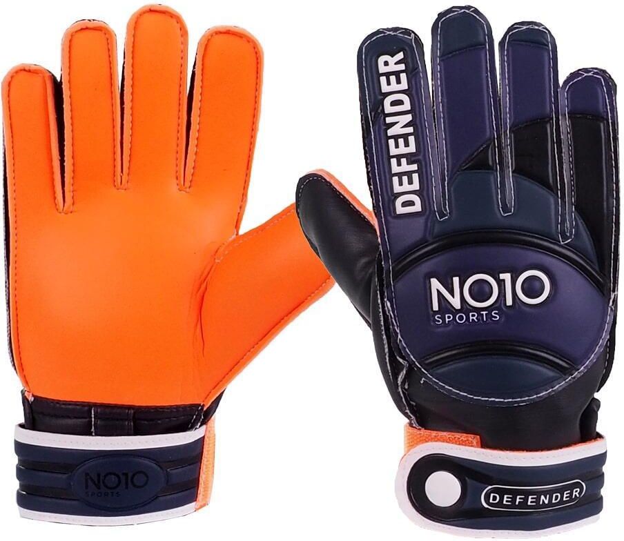 Rękawice bramkarskie NO10 Defender Blue/Orange Rękawice bramkarskie NO10 Defender wykonane zostały z wykorzystaniem materiału Dumbex. Tylna część rękawic z pianki wysoko spienionej o grubości 3 mm a wewnętrzna część z skóry syntetycznej. Rękawice posiadają mankiet wykonany z elastycznego materiału. Szeroki pasek zapinany na rzep o szerokości 5cm. Model z krojem Flat Cut. Materiał: latex, pianka syntetyczna