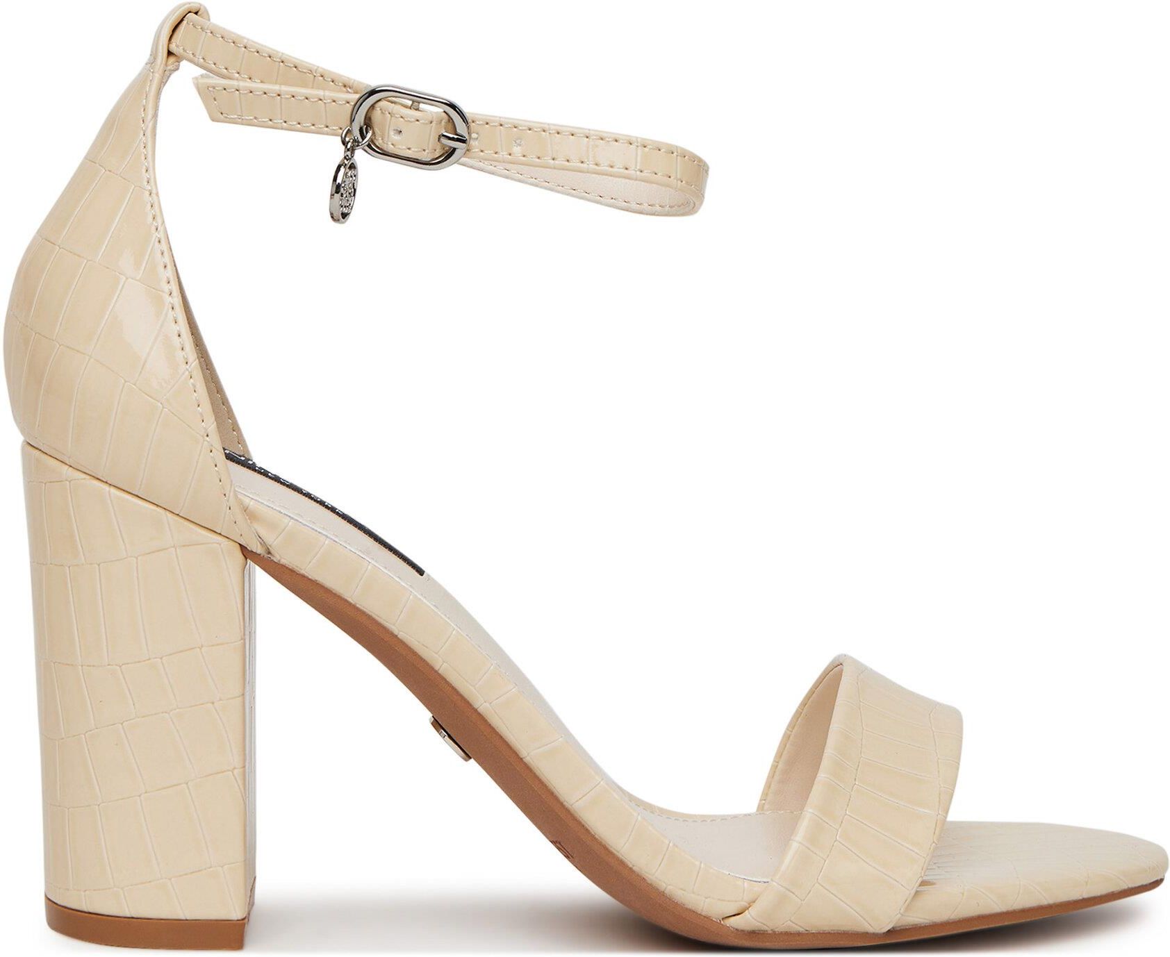 Sandały Nine West w jasnobeżowym kolorze to idealny wybór dla kobiet, ceniących elegancję i komfort. Wykonane z wysokogatunkowego tworzywa syntetycznego, zapewniają trwałość oraz wygodę noszenia przez cały dzień. Obcas typu słupek dodaje stabilności i stylu, idealnie komponując się z wizytowymi i biurowymi stylizacjami. Zapięcie na sprzączkę gwarantuje pewne dopasowanie do stopy, podkreślając jednocześnie subtelny design sandałów. Te wyjątkowe buty sprawią, że poczujesz się wyjątkowo na każdej ważnej okazji. Nie czekaj, dodaj je do swojej kolekcji już dziś! Nine West to amerykańska marka modowa, której początki sięgają lat 70. Swoją nazwę zawdzięcza adresowi budynku przy jednej z ulic Nowego Jorku. Marka szybko zyskała sporą popularność, dzięki czemu posiada butiki niemal na wszystkich kontynentach. Nine West znane jest ze swoich odważnych, ale eleganckich projektów. W naszej ofercie znajdziesz szykowne buty i torebki dla kobiet, które lubią nowojorski styl glamour. Zachwycą Cię szczególnie skórzane botki, czółenka czy sandały na obcasie z gustownymi ozdobami. Odkryj całą ofertę Nine West w CCC!