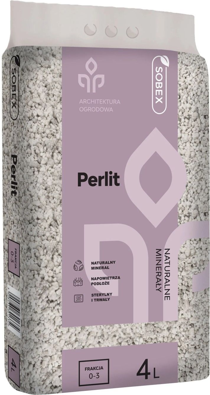 Sobex Perlit 0-3 mm - 4 l Perlit jest minerałem kwarcowym o wulkanicznym pochodzeniu, wytwarzany w procesie wypalania. Występuje w postaci lekkiego drobnego ziarna. Jest produktem całkowiecie naturalnym pozbawionym zapachu i chemicznie neutralnym.