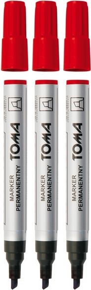 Marker permanentny: wodoodporny tusz, do pisania po różnych powierzchniach, końcówka ścięta 1-5 mm. Kraj produkcji: PL Producent: TOMA Sp. z o.o. ul. Szparagowa 10 62-081 Wysogotwo (PL) tel: 61 8 962 820 email: info@toma.com.pl