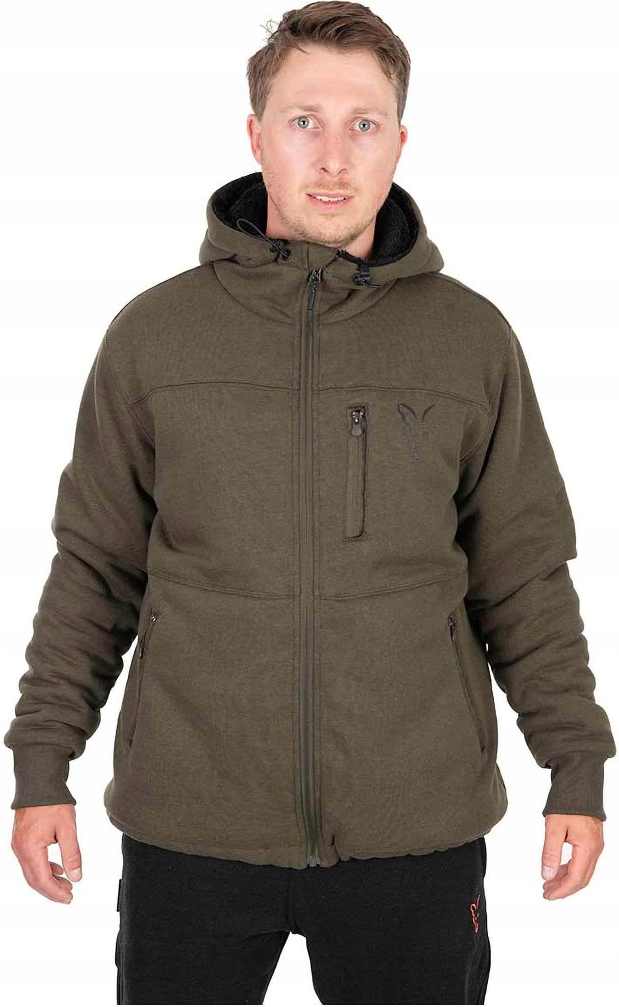 Kurtka Wędkarska Sherpa Fox Collection Jkt Green Black r. XXL Producent: Fox, Symbol: CCL284 Kurtka Fox Collection Sherpa Jkt Green/Black - XXL Zielona kurtka z kapturem z podszewką z polaru Sherpa Podszewka z grubego polaru typu Sherpa dla zapewnienia maksymalnego ciepła Czarne logo Fox Centralny …