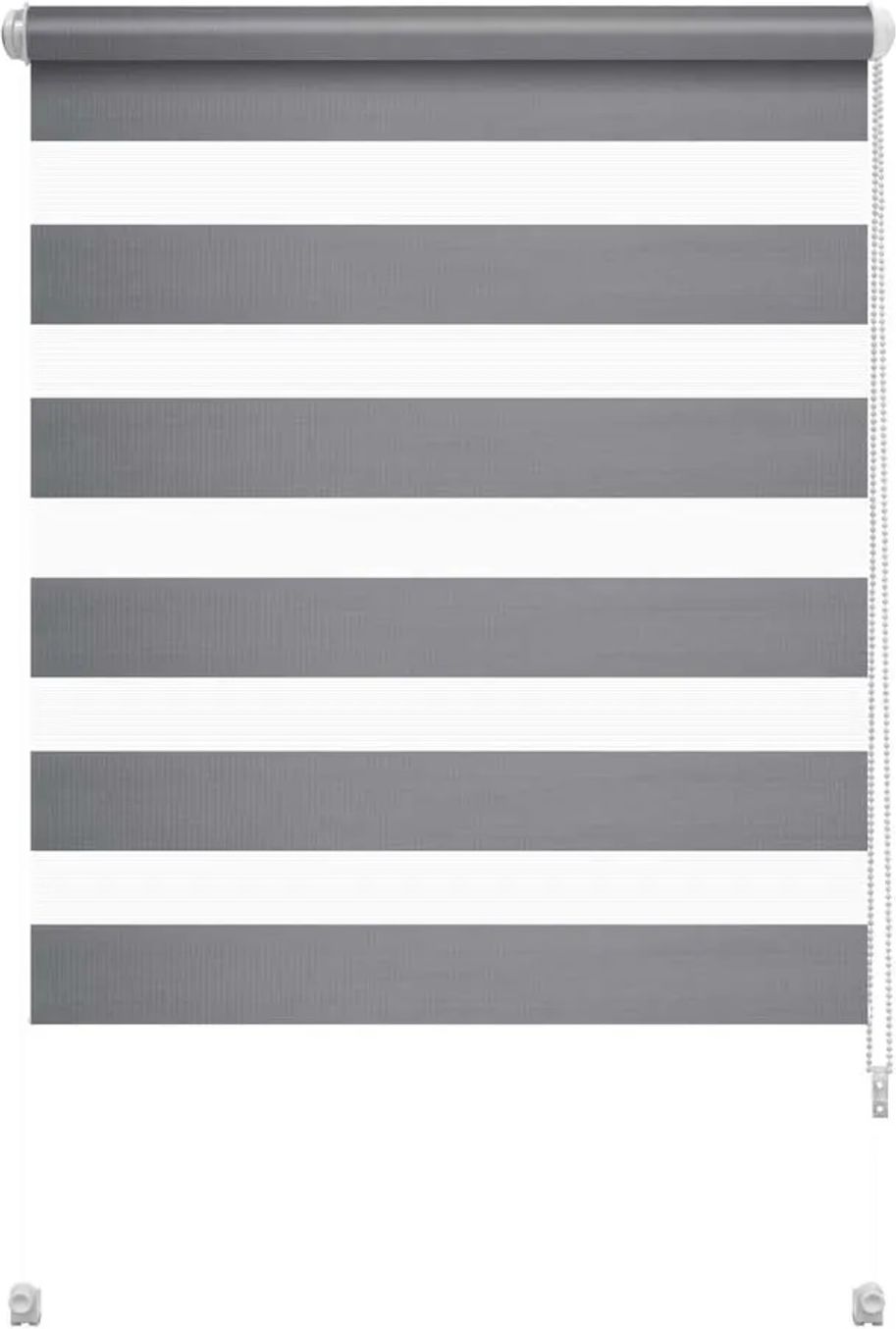 Mini roleta SMART Dzień/Noc szara 57,5 cm x 140 cm. Rolety dzień/noc dają możliwości zbliżone do żaluzji, jednak w wersji rolet. Specjalna tkana segmentowo tkanina umożliwia regulację poziomu naświetlenia we wnętrzu. Łatwość i swoboda regulacji są możliwe dzięki zastosowaniu dwóch rodzajów przezroczystości tkaniny (zaciemniający i prześwitujący). Możemy sterować przepuszczalnością światła, dostosowując zarówno do potrzeb dziennych, jak i nocnych. Regulacja stopnia zaciemnienia, nowoczesny design Seria rolet SMART odznacza się nowoczesnym, minimalistycznym designem. Kolorystyka nawiązuje do stonowanych, eleganckich barw (biel, szarość i jasna szarość). Prezentuje się niezwykle elegancko i efektownie, z łatwością wkomponuje się w dowolne pomieszczenie. Bazuje na poliestrowej tkaninie, tkanej na przemian gęstym i rzadkim splotem. Taka struktura materiału daje możliwość płynnej regulacji dopływu światła do pomieszczenia. Ciemne i jasne pasy tkaniny można ustawiać względem siebie, dostosowując do indywidualnych potrzeb. Dodatkowo, poliestrowa tkanina jest wytrzymała, również na działanie promieni słonecznych, zachowa ładny wygląd na dłużej. Kolekcja obejmuje różnorodne rozmiary i cztery opcje kolorystyczne. Sprawdź warianty i wybierz najbardziej odpowiadający Twoim potrzebom. Zobacz też pozostałe rolety dostępne na Obi.pl. Kliknij tutaj. Swoboda regulacji, prosty montaż Roletę należy montować na skrzydle okiennym za pomocą zaciskowych wieszaków. Konstrukcja elementów montażowych zapewnia bezinwazyjny i prosty montaż do każdego rodzaju okna bez używania jakichkolwiek narzędzi i urządzeń. Jest możliwość nie tylko zawieszenia, ale także przyklejenia do okna bądź montażu na wkręty. Koralikowy, samohamowny mechanizm napędowy pozwala na precyzyjną regulację położenia tkaniny. Można go zainstalować zarówno z prawej, jak i lewej strony. Seria rolet Zebra wyróżnia się wysokim komfortem użytkowania, jak i szybkim, bezproblemowym montażem. Na komfort wpływa także boczne prowadzenie żyłkowe, metalowy obciążnik tkaniny oraz napinacz łańcuszka, element porządkujący jego bieg, utrzymujący łańcuszek przy ramie okna oraz umożliwiający obsługę rolety jedną ręką. Z takim zabezpieczeniem można swobodnie otwierać okno bez obaw o przypadkowe zrzucenie przedmiotów znajdujących się w pobliżu.