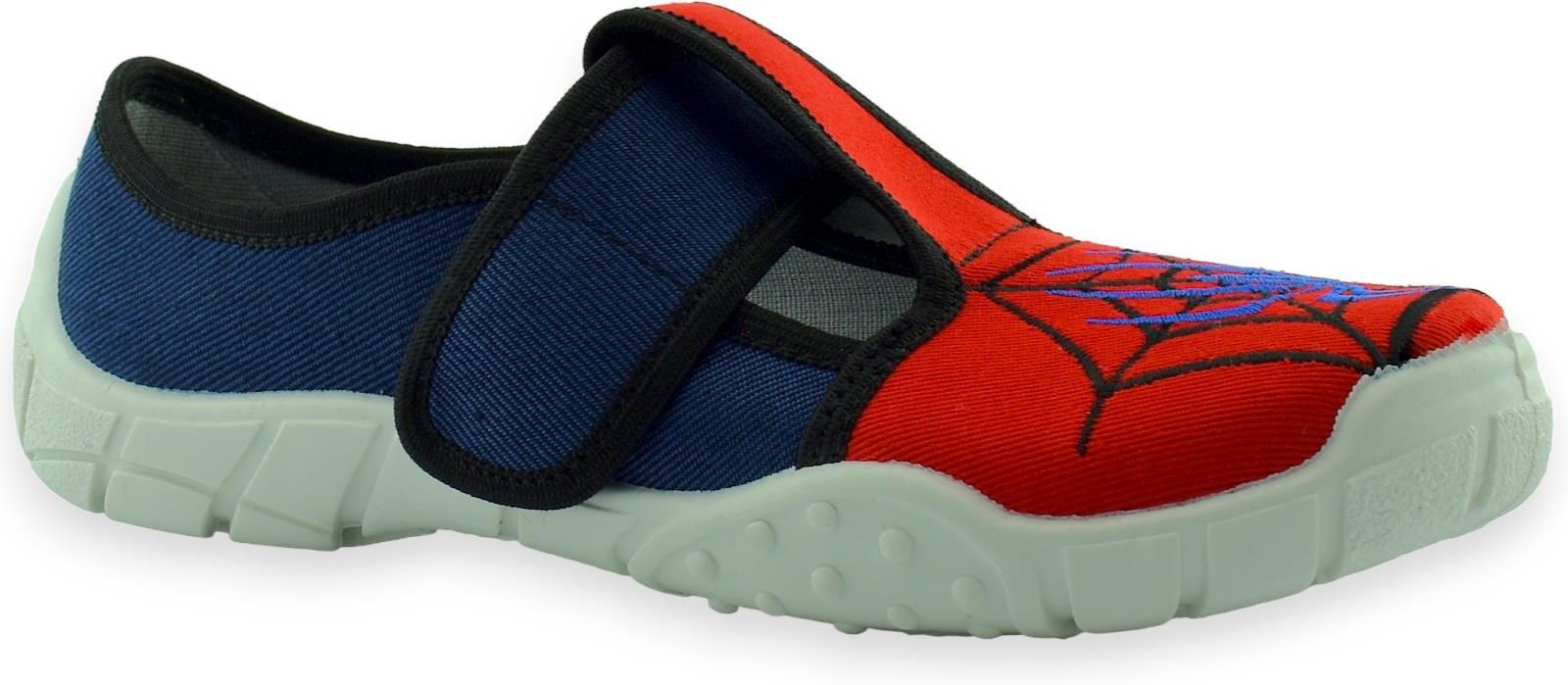 Kapcie dziecięce na rzep. Aplikacja Spider Mana zachwyci wszystkich chłopców lubiących tego super bohatera. Idealne do szkoły, domu są bardzo miękkie i wygodne.