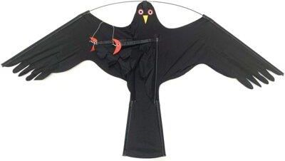 Odstraszacz ptaków marki PATIO w formie latawca w kształcie czarnego ptaka o wymiarach 120 × 60 cm skutecznie chroni ogród, balkon, taras i działkę przed gołębiami, szpakami i wróblami, zapewniając jednocześnie naturalny efekt odstraszający.