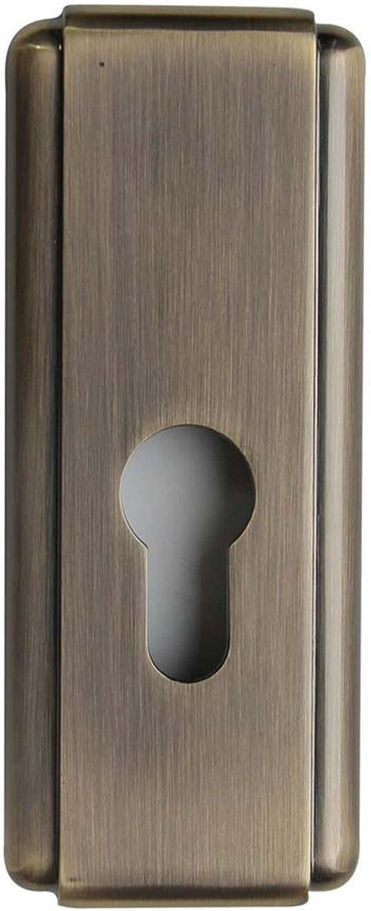 Szyld górny krótki Jane, brąz graffiato, firmy Domino.Szyld do klamek dzielonych wewnętrznych na prostokątnej rozecie. Rodzaj przebicia: na wkładkę.Materiał wykonania: cynk i aluminium.Gwarancja: 2 lata.