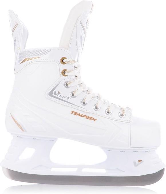 Łyżwy hokejowe TEMPISH Volt-T Lady Niezawodność, komfort i trwałość Łyżwy hokejowe TEMPISH Volt-T Lady zostały stworzone z myślą o hokeistkach w sporcie amatorskim, które poszukują wygodnych i solidnych łyżew do regularnej gry i treningów. Dzięki wytrzymałym materiałom i anatomicznemu dopasowaniu zapewniają stabilność, ochronę oraz komfort nawet podczas długiego użytkowania. Głowne cechy: Wytrzymała konstrukcja: Cholewka wykonana z kompozytu termoplastycznego zapewnia długą żywotność i odporność na intensywne użytkowanie. Komfort i dopasowanie: Podszewka z nylonu CAMBRA oraz anatomicznie profilowana wkładka i wyściółka z pianki w okolicy kostki gwarantują wygodę i wsparcie. Ochrona i stabilność: Język z PVC i 9 mm filcu chroni przed uciskiem i otarciami, a anatomiczna skorupa wspiera kostkę i ścięgno Achillesa. Wysoka jakość jazdy: Ostrze TEMPISH 7000 ze stali powlekanej zapewnia trwałość, płynny ślizg i doskonałą kontrolę. Łyżwy hokejowe TEMPISH Volt-T Lady to idealny wybór dla amatorskich graczy, którzy chcą połączyć wygodę, solidne wykonanie i pewność ruchu na lodzie. Specyfikacja techniczna – Łyżwy hokejowe Zalecane zastosowanie Sport rekreacyjny i treningowy, początkujący i zaawansowani łyżwiarze Materiał zewnętrzny Bardzo wytrzymały, twardy kompozytowy materiał termoplastyczny Materiał wewnętrzny Nylon szczotkowany CAMBRA Budowa języka Język anatomiczny, materiał: specjalny odporny PVC + filc 9 mm Budowa Anatomiczny kształt szkieletu buta w okolicy kostki i ścięgna Achillesa, jednoczęściowy szkielet z kompozytowego materiału termoplastycznego Ostrze TEMPISH 7000 stal powlekana System mocowania Sznurowadła Wyściółka Anatomiczny krój z piankową wyściółką w okolicy kostki