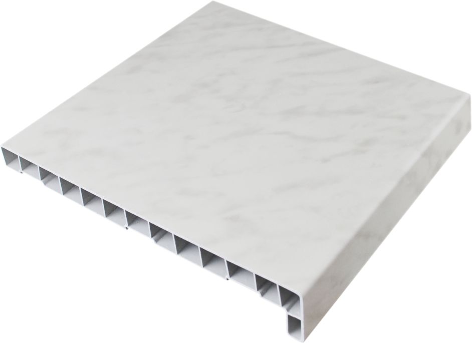 Parapet wewnętrzny PVC, w kolorze marmur. Charakteryzuje się odpornością na działanie wody, wysoką temperaturę oraz na promieniowanie UV. Powierzchnia pokryta wysokiej jakości folią okleinową jest łatwa do utrzymania w czystości. Grubość: 4,2 cm.