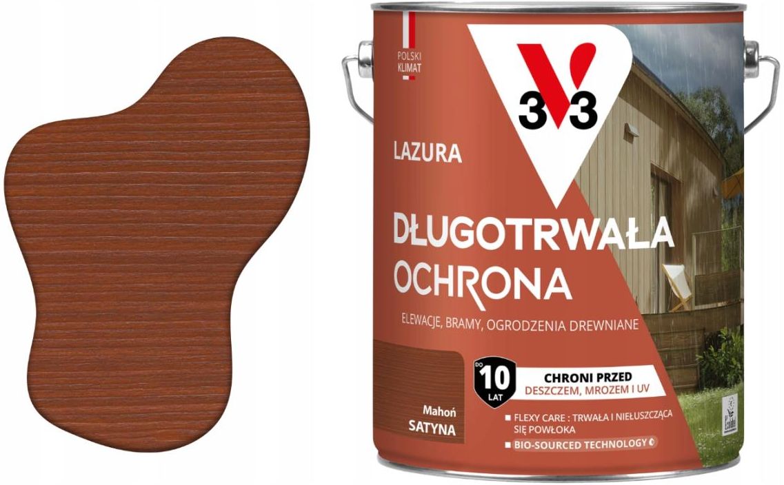 V33 Lazura długotrwała ochrona 10 lat Mahoń satyna 4,5l Łeba