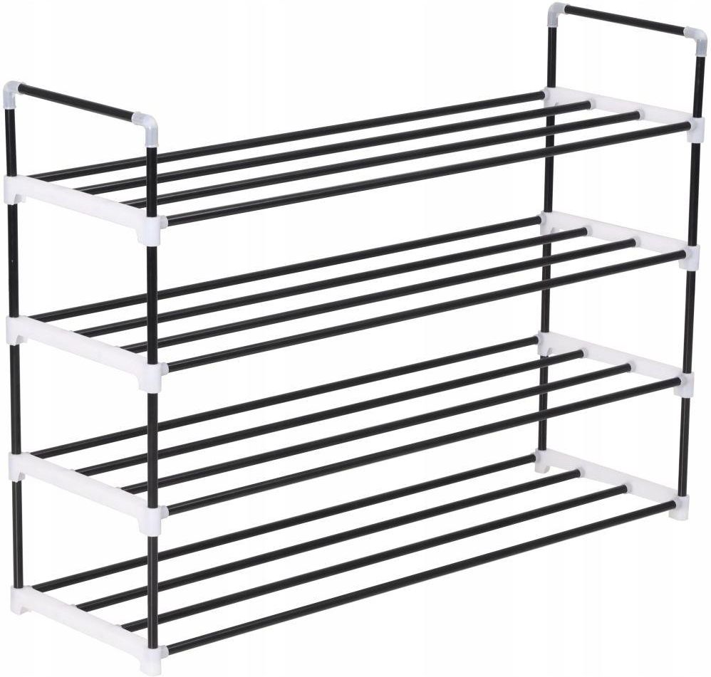 Stojak na buty z 4 półkami, metal i plastik, czarny vidaXL Kolor: Array Rozmiar: Array Ten minimalistyczny stojak na buty to idealne rozwiązanie na przechowywanie Twojego obuwia. Jego rama z metalowych rurek jest lekka i wytrzymała, dzięki czemu stojak ten można z łatwością przestawiać i jest on dość trwały. 4 obszerne półki oferują sporo miejsca na poukładanie butów. Montaż jest prosty. Kolor: czarny Materiał: metal + plastik Wymiary: 91 x 29 x 74 cm (dł. x szer. x wys.) Z 4 półkami i 2 uchwytami Prosty montaż OSTRZEŻENIE: aby zapobiec przewróceniu się produktu, musi on zostać przymocowany do ściany za pomocą dołączonego elementu montażowego