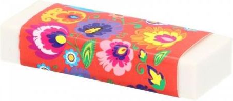 Gumka do mazania haft łowicki w kolorze koralu Przyda się nie tylko w szkole, ale również biurze i domu. Gumka zawinięta w opaskę papierową. Całość w łowickim wzornictwie ludowym. Cena dotyczy jednej sztuki. Wymiary: 5,5 x 2 x 1 cm