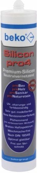 BEKO PRO4 - Twój pewny partner w każdym projekcie! Trwały, niezawodny, wszechstronny. Uszczelniaj z pewnością, wybierając BEKO PRO4 Silikon uniwersalny BEKO PRO4 310ml to doskonały wybór dla wszystkich projektów, które wymagają trwałego i niezawodnego uszczelniania. Oto kilka kluczowych zalet tego produktu: Wysokiej jakości materiał uszczelniający: BEKO PRO4 to produkt oparty na najwyższej jakości silikonie, gwarantujący doskonałe efekty uszczelniania. Odporność na pleśń i grzyby: Dzięki specjalnej formule, ten silikon jest odporny na rozwijanie się pleśni i grzybów, co zapewnia trwałość i estetyczny wygląd. Brak przebarwień na kamieniu naturalnym: Produkt ten nie powoduje przebarwień na kamieniu naturalnym, co jest kluczowe w przypadku zastosowań na powierzchniach takich jak marmur czy granit. Odporność na promieniowanie UV i proces starzenia: BEKO PRO4 utrzymuje swoje właściwości, nawet pod wpływem promieniowania UV i procesów starzenia, co oznacza, że długo zachowuje swoją wydajność. Trwałość kolorów: Niezależnie od warunków, silikon ten zachowuje trwałość kolorów, dzięki czemu projekt zachowuje estetyczny wygląd na lata. Niska emisyjność (GEV-EMICODE® EC 1Plus): BEKO PRO4 charakteryzuje się bardzo niską emisyjnością, co sprawia, że jest przyjazny dla środowiska i zdrowia. Testowany i sprawdzony: Produkt został dokładnie przetestowany i sprawdzony zgodnie z normami takimi jak DIN 18545, ISO 11600, DIN EN 15651-1/2/3/4, co potwierdza jego jakość i skuteczność. Bez rozpuszczalników: BEKO PRO4 nie zawiera szkodliwych rozpuszczalników, co jest korzystne zarówno dla użytkowników, jak i środowiska. Wysoka przyczepność: Ten silikon zapewnia doskonałą przyczepność do różnych powierzchni, co sprawia, że jest wszechstronny i łatwy w użyciu. Długotrwała miękkość i elastyczność: Dzięki swojej długotrwałej miękkości i elastyczności, BEKO PRO4 doskonale radzi sobie z ruchami i wibracjami podczas eksploatacji. Doskonałe właściwości przywracania kształtu: Produkt ten jest w stanie utrzymać swój kształt nawet w trudnych warunkach, co jest kluczowe dla zachowania integralności uszczelnień Tolerancja na bitum: BEKO PRO4 wykazuje odporność na kontakt z bitumem, co jest istotne w wielu zastosowaniach budowlanych. Przyczepność bez gruntowania: Można go używać bez konieczności wcześniejszego gruntowania na wielu różnych podłożach, co przyspiesza i ułatwia proces aplikacji. Przeznaczony do stosowania w pomieszczeniach i na zewnątrz: Ten silikon jest wszechstronny i nadaje się zarówno do zastosowań wewnętrznych, jak i na zewnątrz budynków.