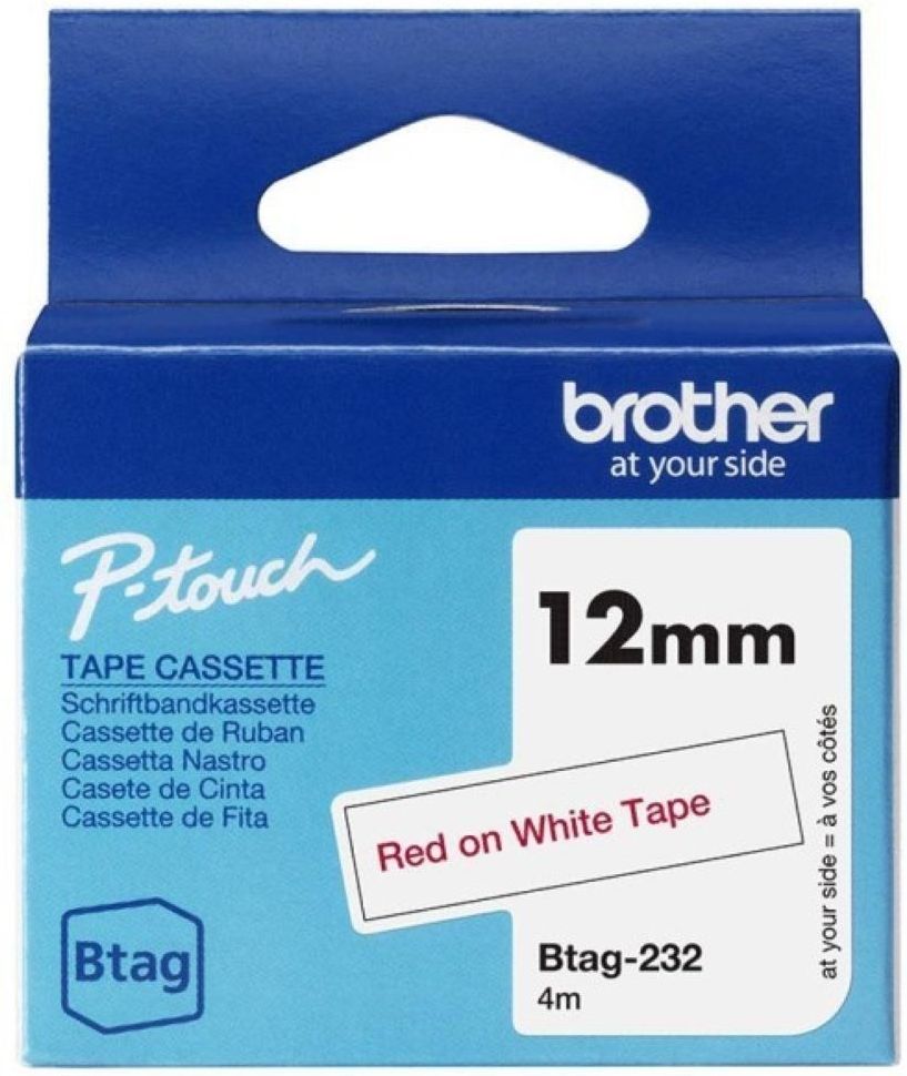 Brother BTAG-232 12 mm szerokości, 4 m długości Wysokiej jakości taśmy firmy Brother Zapewniają trwałe i czytelne etykiety Opis produktu  Brother BTAG-232 Laminowana taśma BTAG-232 firmy Brother, kompatybilna z drukarkami P-touch. Wszechstronna i czytelna, dzięki czerwonemu nadrukowi na białym tle. Stanowi przydatne narządzenie do znakowania zarówno w domu, w biurze, jak i w innych miejscach. Kompatybilne z Brother P-touch PT-N10, PT-N20, PT-N25BT. Więcej informacji o produkcie  Brother BTAG-232 Sprawdzi się zarówno w domu, biurze jak i w innym miejscu pracy. Laminowana taśma BTAG-232 z czerwonym nadrukiem na białym tle. Etykiety mają wszechstronne zastosowanie - od identyfikacji akt osobowych i szafek, przez pamięć USB aż po inne aktywa. Samoprzylepne etykiety są wytrzymałe temperaturowo, odporne na chemikalia, wodę, ścieranie. Mogą być zatem stosowane zarówno wewnątrz jak i na zewnątrz. Taśmy BTAG są łatwe i szybkie w montażu. Występują w wielu kolorach i rozmiarach, a także materiałach. Taśmy BTAG z pewnością sprostają Twoim oczekiwaniom w zakresie etykiet.