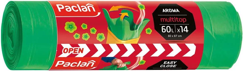 Produkt Paclan, worki zapachowe, multitop, 60 l x 14 sztuk do kupienia w Gemini. Pozbądź się nieprzyjemnych zapachów śmieci dzięki workom zapachowym Multitop Paclan! Opakowanie zawiera 14 sztuk wytrzymałych worków o dużej ...