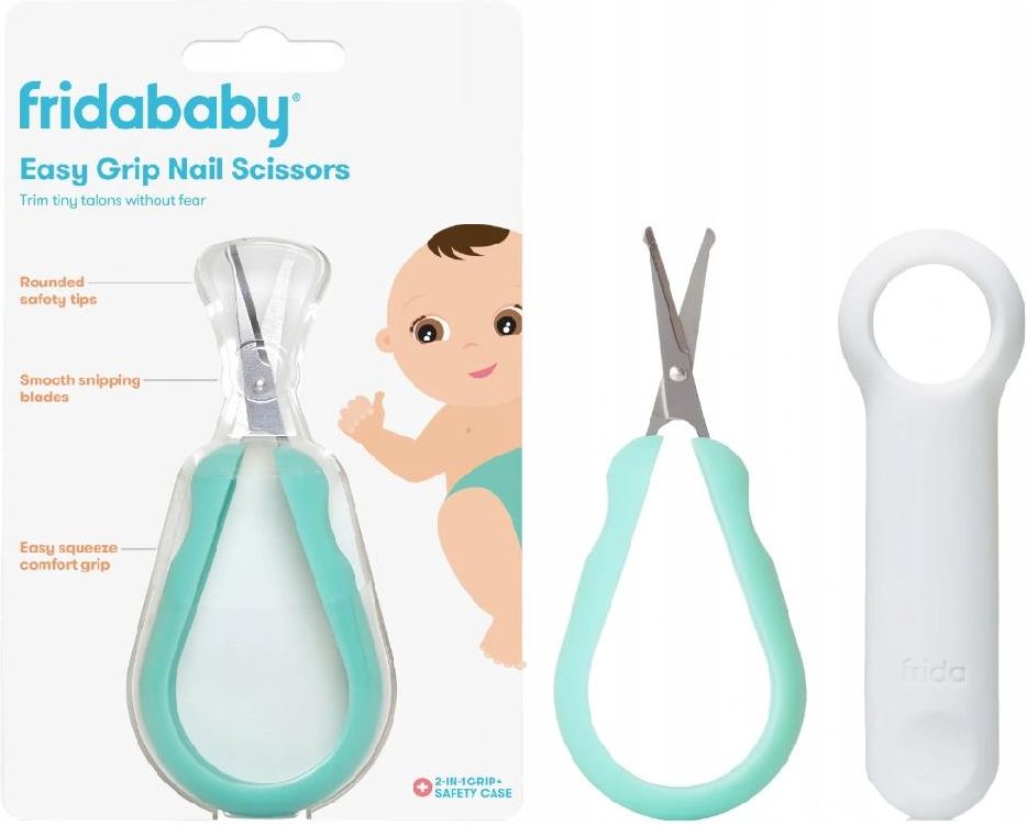 Fridababy Easy Grip Nożyczki Obcinacz Do Paznokci Dla Dzieci Niemowląt Z nożyczkami Fridababy Easy Grip nie musisz się martwić obcinaniem nawet najmniejszych paznokci! Bezpieczne i zaokrąglone ostrza pomagają skutecznie obciąć paznokcie, a ergonomiczna, antypoślizgowa rączka zapewnia pewną kontrolę. Zestaw posiada obcinacz do paznokci oraz etui zabezpieczające. Kluczowe cechy Ergonomiczna, antypoślizgowa rękojeść zapewnia wygodny i stabilny chwyt, wzmocniona oparciem na palec, co ułatwia kontrolę kierunku cięcia. Zaokrąglone ostrza pozwalają na bezpieczneprzycinanie nawet najmniejszych paznokci. Asymetryczna rękojeść umożliwia łatweużytkowanie zarówno przez praworęcznych jak i leworęcznych rodziców. Wykonane ze stali nierdzewnej i wolne od BPA (szkodliwy związek organiczny z grupy bisfenoli powszechnie stosowany do produkcji tworzyw sztucznych). Marka Fridababy oferuje praktyczne, proste i inteligentne rozwiązania dla całej rodziny, które ułatwiają życie nowym rodzicom. Rozwój produktów zawdzięczamy szwedzkim ekspertom, którzy kładą nacisk na 100% bezpieczeństwa, skuteczny efekt i najwyższą jakość materiałów.