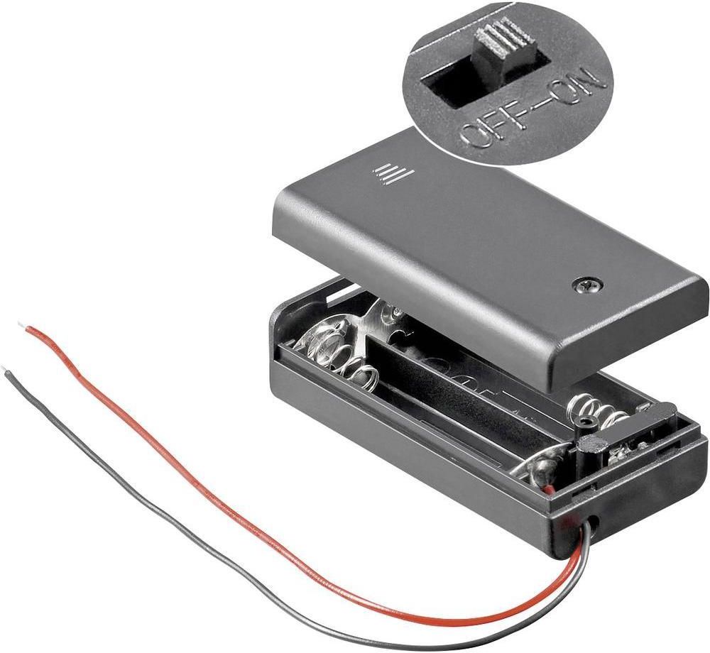 2x uchwyt na baterie AA (Mignon) luźne końcówki kabli, przełączane, wodoodporne Uchwyt na baterie Goobay może być zainstalowany lub przymocowany do urządzenia zasilanego bateriami.Do wodoodpornej obudowy z czarnego tworzywa sztucznego można włożyć dwie baterie AA.Komora baterii AA utrzymuje baterie …