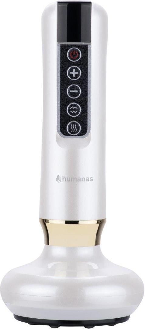 Humanas DermaSmooth to innowacyjny masażer antycellulitowy, który łączy elektroniczną bańkę chińską z masażem kulkowym i funkcją podgrzewania. To urządzenie stworzone z myślą o redukcji cellulitu, ujędrnianiu skóry oraz relaksie po ciężkim dniu. Wyposażony w 12-stopniową regulację podciśnienia i temperatury (do 45°C), DermaSmooth pozwala dopasować intensywność zabiegu do Twoich potrzeb. Bezprzewodowa praca, funkcja timera oraz podświetlany ekran sprawiają, że korzystanie z masażera jest niezwykle wygodne. Urządzenie wspomaga mikrokrążenie, łagodzi bóle mięśniowe, przyspiesza regenerację tkanek i pomaga usuwać toksyny. Możesz go stosować z ulubionymi olejkami eterycznymi, które dodatkowo odżywiają i nawilżają skórę. Stwórz własne domowe SPA i ciesz się pięknem oraz zdrowiem każdego dnia! Główne cechy produktu wielozadaniowy masażer antycellulitowy 3 w 1 3 techniki masażu w 1 urządzeniu: masaż kulkowy, ciepły kompres i bańka chińska nieocenione wsparcie w ujędrnianiu skóry oraz redukcji cellulitu sprawdzony sposób na domowe SPA – relaks, odprężenie i zmniejszanie napięcia mięśni bańkowanie pomaga w bólach nerwowo-mięśniowych, przyspiesza metabolizm, stymuluje mikrokrążenie, działa przeciwzapalnie i przeciwbólowo, przyspiesza procesy regeneracji tkanek miękkich, usuwa toksyny wydzielane przez skórę i poprawia odporność organizmu pomaga w walce z wieloma dolegliwościami, takimi jak nawracające zapalenie oskrzeli, astma, stany pourazowe, zwyrodnienia i przeziębienia świetny sposób na delikatne złuszczanie martwego naskórka wbudowany akumulator zapewnia bezprzewodowe działanie 12-stopniowa regulacja podciśnienia 12-stopniowa regulacja temperatury (maks. 45°C) funkcja timera – automatyczne wyłączenie po 20 minutach podświetlany ekran i prosta obsługa za pomocą 4 przycisków specjalny przycisk do szybkiego zwalniania ciśnienia możliwość stosowania z olejkami eterycznymi łatwe czyszczenie i konserwacja w zestawie specjalne filtry do pracy z olejkami ergonomiczny kształt zapewniający pewny chwyt doskonały pomysł na prezent dla bliskich Domowe SPA na wyciągnięcie ręki Wyobraź sobie chwilę relaksu po długim dniu pracy – ulga, przyjemność, odprężenie... Teraz możesz poczuć się jak w profesjonalnym salonie masażu w zaciszu własnego domu! Masażer antycellulitowy Humanas DermaSmooth pozwala połączyć tradycyjną metodę bańki chińskiej z ciepłym kompresem i masażem kulkowym. Dzięki niemu zyskasz gładką, jędrniejszą skórę oraz tak potrzebny odpoczynek od pędzącego świata. Pozbądź się cellulitu! Sekretem skuteczności masażera Humanas DermaSmooth jest wielopłaszczyznowe podejście do walki z cellulitem. Połączenie podciśnienia (podobnie jak w tradycyjnej bańce chińskiej), rozgrzewającego kompresu oraz masażu kulkowego skutecznie pobudza krążenie. Dzięki temu skóra jest lepiej dotleniona, a jej komórki sprawniej usuwają nagromadzone toksyny. Regularny masaż przyspiesza też metabolizm komórek tłuszczowych i pomaga w redukcji obrzęków. W efekcie skóra zyskuje większą jędrność i elastyczność, a cellulit staje się mniej widoczny. Użycie olejków eterycznych ułatwia wnikanie składników odżywczych w głąb naskórka, dodatkowo wspierając proces wygładzania i nawilżania skóry. Swobodna i prosta obsługa Zapomnij o plączących się kablach i nieporęcznych zasilaczach. Humanas DermaSmooth to urządzenie stworzone z myślą o pełnej mobilności – wystarczy je naładować i możesz korzystać z masażera w dowolnym miejscu. Podświetlany ekran cyfrowy oraz funkcja timera (automatyczne wyłączenie po 20 minutach) sprawiają, że obsługa Humanas DermaSmooth jest dziecinnie prosta. Włącz urządzenie, ustaw tryb pracy i poziom intensywności, a masażer zadba o resztę! Poznaj moc bańki chińskiej Sekretem działania DermaSmooth jest połączenie znanej od setek lat metody bańki chińskiej z nowoczesną technologią. Urządzenie oferuje aż 12 poziomów podciśnienia, dzięki czemu możesz dostosować intensywność zabiegu do własnych potrzeb i wrażliwości skóry. Zacznij od delikatnego masażu, by stopniowo zwiększać siłę ssania dla lepszego efektu wyszczuplającego i antycellulitowego. Jeśli potrzebujesz szybko oderwać masażer od skóry, przycisk zwalniający ciśnienie ułatwi bezpieczne i komfortowe wyłączenie ssania. PRZECIWWSKAZANIA: Pamiętaj, że stosowanie terapii bańką chińską nie jest zalecane w przypadku: chorób autoimmunologicznych, nowotworów, hemofilii, stanów zapalnych skóry, ciąży, miesiączki, chorób serca, chorób zakaźnych, wysokiej gorączki, cery naczyniowej, żylaków, padaczki oraz stwardnienia rozsianego. Zadbaj o swoje ciało Masażer z funkcją bańki chińskiej Humanas DermaSmooth to nie tylko skuteczna walka z cellulitem. To idealne rozwiązanie dla osób, które chcą skorzystać z terapii próżniowej w domowym zaciszu. Urządzenie oferuje wiele korzyści dla zdrowia fizycznego i psychicznego. To m.in.: lepsze krążenie krwi i przyspieszenie regeneracji tkanek, łagodzenie bólu i napięcia mięśniowego, usuwanie toksyn z organizmu, poprawa elastyczności skóry i tkanek, wzmocnienie układu odpornościowego i nerwowego, zwiększenie produkcji kolagenu, stymulacja układu limfatycznego, przyspieszanie metabolizmu. Otulające ciepło Marzysz o dodatkowej porcji relaksu? Funkcja gorącego kompresu (maks. 45°C) rozgrzewa skórę, poprawiając krążenie i wspomagając walkę z cellulitem. Głowicę masażera wieńczy aż 8 elastycznych stalowych kulek – idealnych właśnie do rozgrzewającego masażu, który dodatkowo koi spięte mięśnie i wprowadza w stan przyjemnego odprężenia. Dzięki temu każdy zabieg to nie tylko sposób na wygładzenie skóry, ale także na regenerację całego ciała. Przyjemny masaż kulkami Kolejną tajemnicą intensywnego i przyjemnego ma