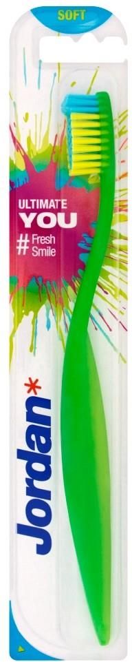 Jordan Ultimate You szczoteczka do zębów, soft, 1 szt. wyróżnia się niebanalnym wzornictwem i wyrazistymi kolorami. Jej wydłużona główka umożliwia dotarcie do trudno dostępnych miejsc, a miękkie włosie nie powoduje podrażnień nawet delikatnych dziąseł.