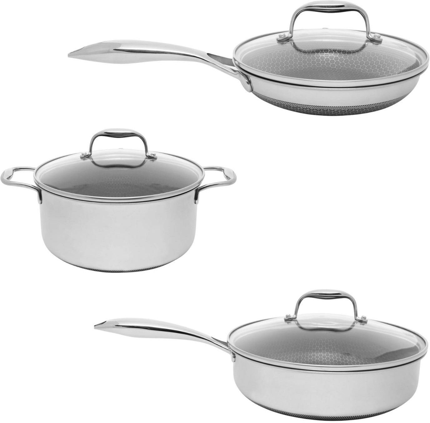 Zestaw naczyń FRENCH CHEF z powłoką DIAMOND Kohersen BLACK CUBE Do przyrządzania przepysznych potrawek i aromatycznych sosów – nic nie zastąpi miłośnikom francuskich (i nie tylko) specjałów zestawu z patelnią saute, mniejszą patelnią do podsmażania i średnim garnkiem. Zasmakuj w wygodzie, wybierz optymalne rozwiązanie do swojej kuchni.   W skład zestawu wchodzą: Patelnia z pokrywką 20 cm Kohersen BLACK CUBE Garnek z pokrywką 24 cm Kohersen BLACK CUBE Patelnia Saute z pokrywką 26 cm Kohersen BLACK CUBE Naczynia Kohersen® zostały wykonane przy użyciu wyjątkowej, opatentowanej, koreańskiej technologii BLACK CUBE® i jako jedyne posiadają oryginalną, dwustronną powierzchnię funkcyjną zarówno wewnątrz, jak i na zewnątrz naczynia, dodatkowo wzmocnioną niezwykle trwałą i odporną na zarysowania powłoką DIAMOND. Udoskonalona struktura plastra miodu pozwala na wyjątkowo efektywne rozprowadzanie ciepła na całej powierzchni użytkowej, a także zapobiega przywieraniu. Gotowanie stało się szybsze, łatwiejsze, zachowując przy tym wszelkie walory smakowe i zdrowotne. Oszczędność energii Najszybsze nagrzewanie Garnki i patelnie Kohersen® posiadają hybrydową konstrukcję TRI-PLY: stal nierdzewna - aluminium - stal nierdzewna. Trójwarstwowa budowa zapewnia niezwykłą trwałość i odporność na uszkodzenia, dzięki czemu naczynia służą długie lata. Można w nich przyrządzać potrawy, także w piekarniku, w temperaturze do 260°C. Ogromną zaletą takiej konstrukcji jest doskonałe przewodzenie i efektywne utrzymanie ciepła podczas gotowania. Dzięki niej powierzchnia osiąga pożądaną temperaturę w bardzo krótkim czasie (60 s do 200°C), nagrzewając się najszybciej spośród przetestowanych patelni popularnych marek.* Ponadto, podtrzymanie ciepła podczas gotowania wymaga niższych nakładów energetycznych. Hybrydowa, wielowarstwowa konstrukcja patelni zapewnia najbardziej efektywne przewodnictwo ciepła. Gotujesz szybciej, oszczędzasz energię, obniżasz wydatki. Spodnią warstwę naczynia stanowi stal magnetyczna, która umożliwia gotowanie na kuchenkach indukcyjnych. Oszczędność wody Bez przywierania, bez szorowania Opatentowana, dwustronna powierzchnia funkcyjna w technologii BLACK CUBE® posiada wyjątkową strukturę plastra miodu. Jest to kompozycja wypustek ze stali nierdzewnej oraz wklęsłej powierzchni pokrytej powłoką zapobiegającą przywieraniu. Dzięki temu rozwiązaniu tłuszcz, przyprawy czy resztki potrawy nie przywierają do naczynia, a gotowanie staje się łatwiejsze i przyjemniejsze. Mycie zajmuje mniej czasu i wymaga niewielkiej ilości wody czy detergentu. Trwałość na lata Ochrona przed uszkodzeniem Długotrwała, odporna na uszkodzenia powłoka DIAMOND to dodatkowe zabezpieczenie powierzchni naczynia - pomaga chronić naczynie przed zarysowaniem, nawet podczas używania ostrych przyborów kuchennych, na przykład szpatułek, czy szorstkich gąbek do mycia. Niebieska poświata na powierzchni naczynia to widoczna oznaka tej wyjątkowej ochrony. Powłoka DIAMOND jest odporna na ścieranie i zapewnia ochronę na długi czas - nawet do 10000 przetarć. Ponadto, wypustki ze stali nierdzewnej tworzące wzór plastra miodu tworzą niewielkie „kolumny”, na których opierają się przybory kuchenne podczas mieszania potrawy, co stanowi pierwszy bufor zabezpieczający powłokę zapobiegającą przywieraniu. Zdrowo i dietetycznie Na minimalnej ilości tłuszczu Garnki i patelnie Kohersen® to nowa jakość gotowania, a także wielki krok w stronę zdrowego odżywiania. Przygotowanie potraw jest dużo szybsze, dzięki hybrydowej budowie korpusu naczyń, zwłaszcza jej aluminiowemu komponentowi. Ma to ogromne znaczenie, szczególnie podczas smażenia. „Skórka” zamyka się szybciej, zatrzymując soki i nie przepuszczając tłuszczu w głąb smażonej potrawy. Im szybciej smażymy, tym mniej wytwarza się niekorzystnych dla zdrowia związków, takich jak nadtlenki czy izomery trans. Dodatkowo, dzięki powłoce zapobiegającej przywieraniu przyrządzanie posiłków odbywa się przy użyciu niewielkiej ilości tłuszczu. Doświadczeni kucharze mogą również docenić zalety smażenia beztłuszczowego na patelniach Kohersen®. Potrawy pozostają smaczne, a jednocześnie zdrowe i dietetyczne – ograniczasz kalorie oraz powstawanie szkodliwych substancji. Zrównoważona kuchnia W trosce o zdrowie i środowisko Wybierając naczynia Kohersen®, wspierasz działania na rzecz ochrony zdrowia i środowiska. Dzięki nim nie tylko oszczędzasz energię i wodę w swoim domu, ale i przeciwdziałasz emisji niebezpiecznych związków. Materiał, z którego wykonana jest zapobiegająca przywieraniu powłoka nie zawiera szkodliwych substancji PFOA i PFOS, które zakwalifikowane są do grupy związków trwale zanieczyszczających wody i grunty oraz do grupy związków mających wpływ na rozwój chorób układu hormonalnego oraz chorób płuc. Wiele patelni i garnków dostępnych na rynku posiada powłokę zapobiegającą przywieraniu, której uszkodzenie sprawia, że naczynie nie nadaje się już do użycia, gdyż do pokarmów przenikają wymienione powyżej szkodliwe substancje. Kohersen® BLACK CUBE® stanowi zatem korzystny dla zdrowia wybór. Ze smakiem i stylem Stworzone do każdej kuchni Tworząc posiłki w naczyniach Kohersen® zachowujesz doskonały smak i aromat potraw, ciesząc się pełnią wrażeń zmysłowych. Garnki i patelnie Kohersen® zostały bowiem zaprojektowane nie tylko dla większego komfortu, ale również by przydać gotowaniu nutkę elegancji. Linia BLACK CUBE® zachwyca nowoczesnym, wysmakowanym designem. Sprawdzą się w każdym domu i restauracji, można w nich gotować na każdej kuchence, gazowej, elektrycznej, ceramicznej, halogenowej czy indukcyjnej, a nawet zapiekać w piekarniku. Naczynia mogą być myte w zmywarce. Przed pierwszym użyciem Zahartuj swoje naczynia Przed pierwszym zastosow