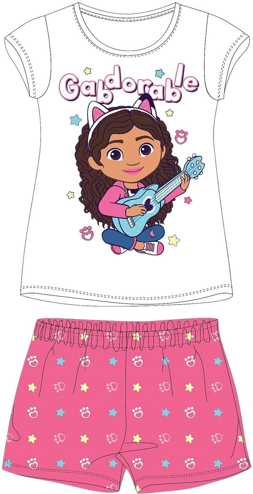 Kolorowa, wygodna piżama na krótki rękaw dla dziewczynki z bohaterami ukochanej bajki Koci Domek Gabi. Doskonały wybór na ciepłe wiosenne i letnie noce. Skład: Bluzka - 100% Bawełna Spodnie - 100% Bawełna