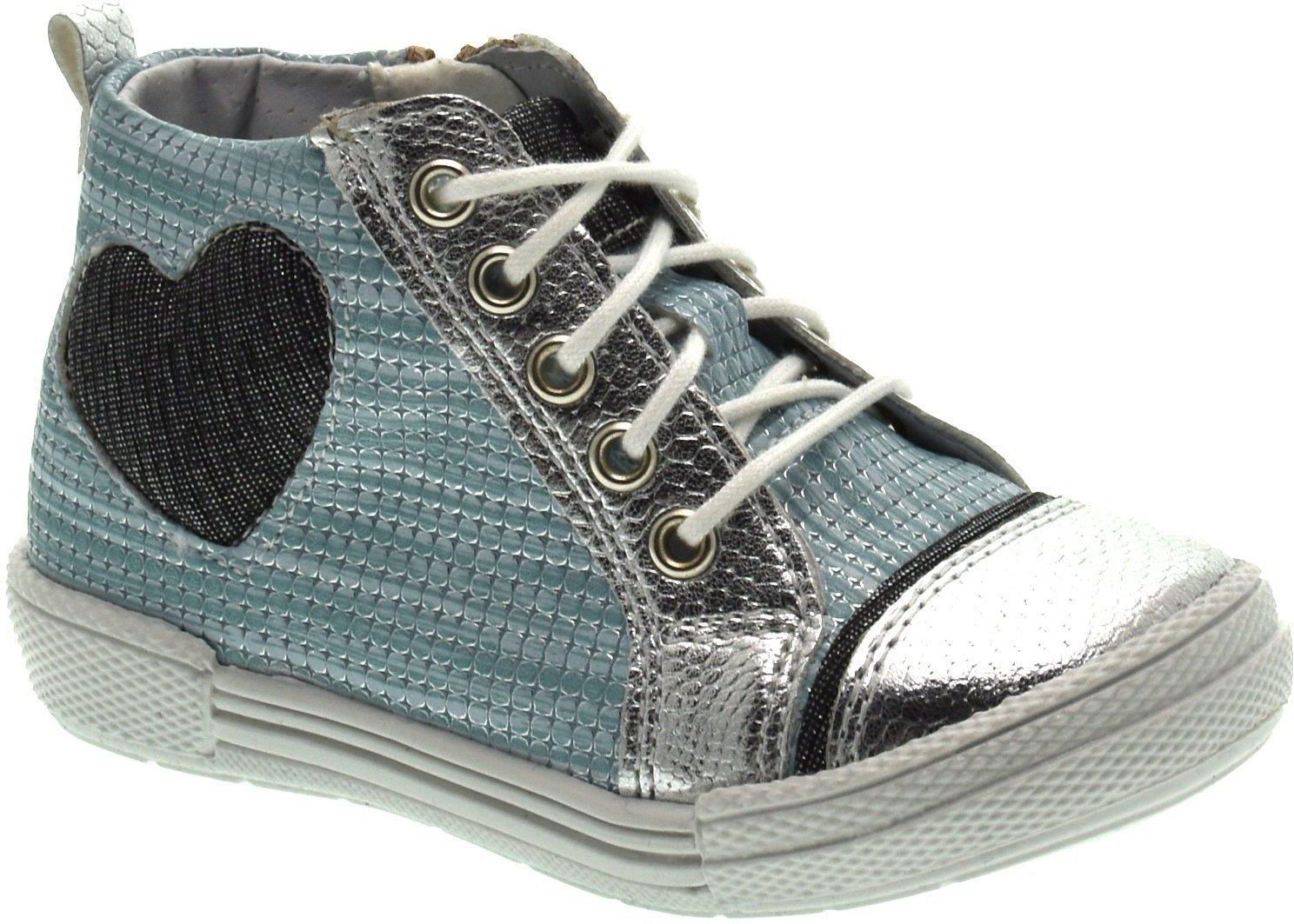 Dziewczęce trzewiki za kostkę ze skórzaną wyściółką w błękitnym wydaniu.