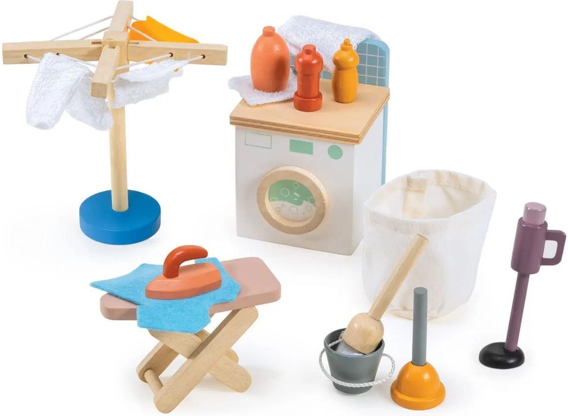 Pralnia, zestaw mebelków, Mentari Idealne wyposażenie drewnianych domków! Każdy domek dla lalek potrzebuje pralni, a ten zestaw będzie jej idealnym wyposażeniem! Pralnia od Tender Leaf Toys to doskonałe uzupełnienie domkowej kolekcji, które wprowadza element codziennych obowiązków w świat zabawy. W …