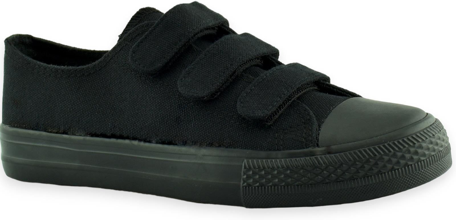 Trampki w intensywnym czarnym kolorze, na czarnej podeszwie zapinane na dwa rzepy. Wygodne, miękkie spodobają się zarówno chłopcom jak i dziewczynkom. Idealne do każdej aktywności na świeżym powietrzu w ciepłe dni.