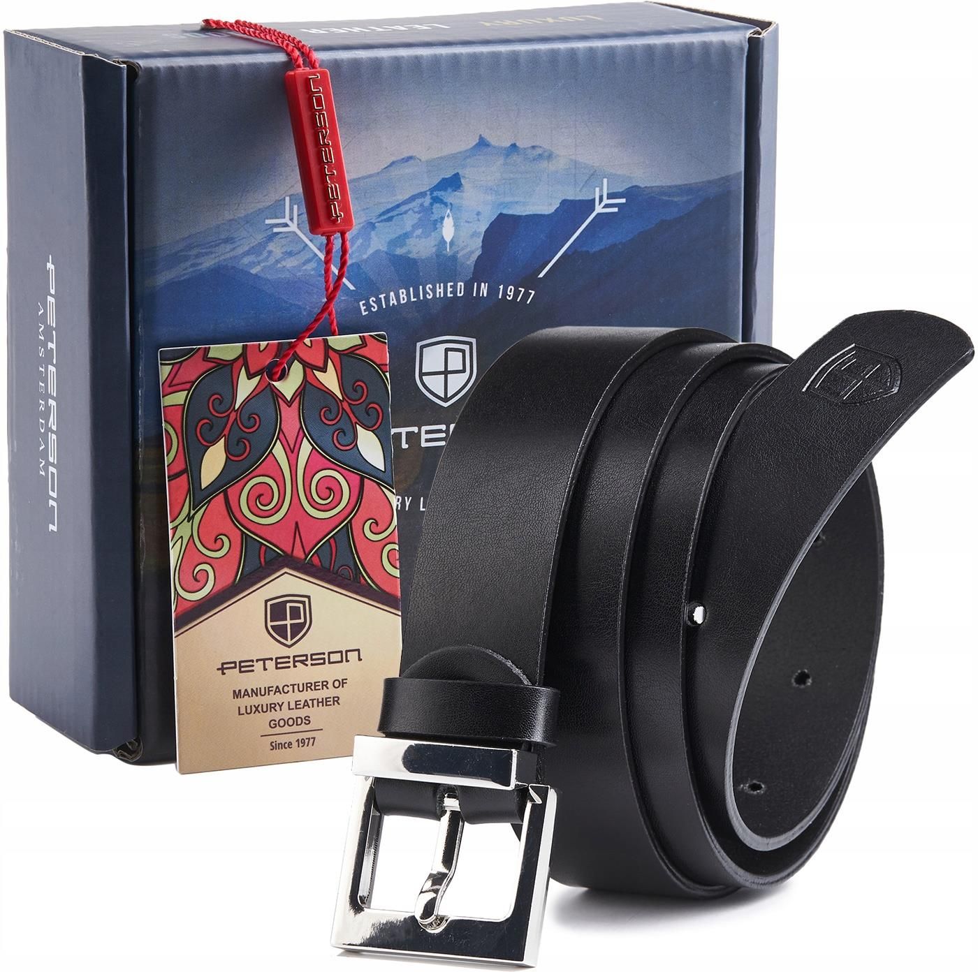 Szeroki pasek z prostokątną klamrą — Peterson Polska marka | Produkt znanej i cenionej marki z wieloletnią tradycją Najwyższa jakość wykonania | Pasek wykonany z wysokogatunkowej skóry naturalnej. Wykorzystanie trwałego surowca jest gwarancją długiego użytkowania Świetna klamra | Pasek posiada srebrną metalową klamerkę w prostokątnym kształcie. Dalej znajduje się zawsze przydatna szlufka - umożliwia to bardzo wygodne użytkowania paseczka Uniwersalna szerokość | Szerokość paska jest na tyle uniwersalna (2,7 cm), że pasuje on do szlufek spodni zarówno jeansowych jak i materiałowych. Będzie także ciekawym dopełnieniem tunik i sukienek! Banalnie prosta możliwość skrócenia długości paska w domowych warunkach | W razie potrzeby będziesz w stanie samodzielnie skrócić pasek w bardzo prosty sposób Rewelacyjny pomysł na prezent | Jeśli nie masz pomysłu na prezent, wybierz pasek! Będzie to świetny i przede wszystkim praktyczny prezent, z którego ucieszy się każda Kobieta!