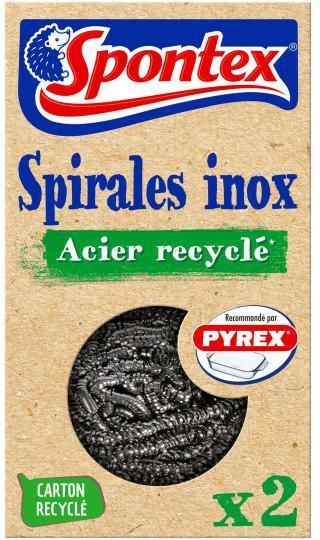 SPONTEX SPIRALES INOX ACIER RECYCLE 2SZT 1950117 Czyścik spiralny Spontex skutecznie czyści i szoruje zabrudzone powierzchnie takie jak:naczynia, ruszty, grille. Recycled Steel Spirals są wykonane z recyklingu stali nierdzewnej . Opakowanie nadaje się w pełni do recyklingu i częściowo do recyklingu. 85% przetworzonej stali nierdzewnej. Opakowanie zawiera 2szt.