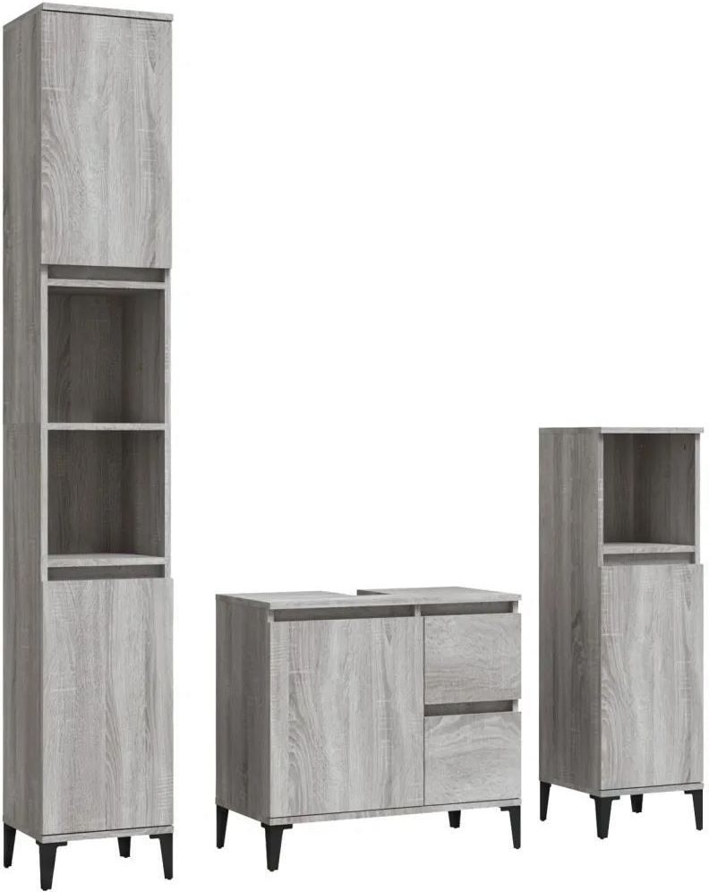 Vidaxl 3 Częściowy Zestaw Szafek Łazienkowych Szary Dąb Sonoma Lębork