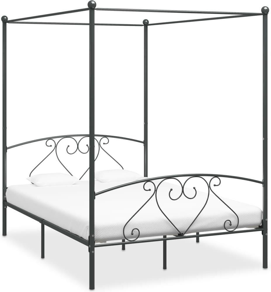 Rama łóżka z baldachimem, szara, metalowa, 140 x 200 cm vidaXL Kolor: Array Rozmiar: Array Stwórz elegancki i klasyczny wystrój w swojej sypialni za sprawą naszej metalowej ramy łóżka z baldachimem! Łóżko zostało sprytnie skonstruowane z górną ramą, na której możesz zawiesić swoje ulubione zasłonki …
