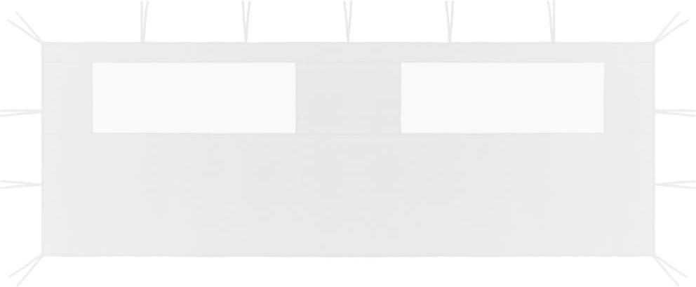 Ściana z oknami do altany jest idealnym wyborem do każdego namiotu imprezowego do ogrodu. Ściankę namiotu wykonano z tkaniny, dzięki czemu jest mocna i trwała. Skutecznie zapobiegnie przedostawaniu się komarów do Twojego miejsca rekreacji. Sznurki na krawędzi każdej ścianki ułatwiają montaż i zapewniają stabilność po zamocowaniu. Przezroczyste okno z PVC wpuści światło do namiotu, tworząc przyjemną atmosferę. Kolor: biały Materiał: tkanina (100% poliester), PVC Wymiary: 6 x 2 m (dł. x szer.) Wymiary okna: 200 x 70 cm (szer. x wys.) Gramatura tkaniny: 70 g/m²