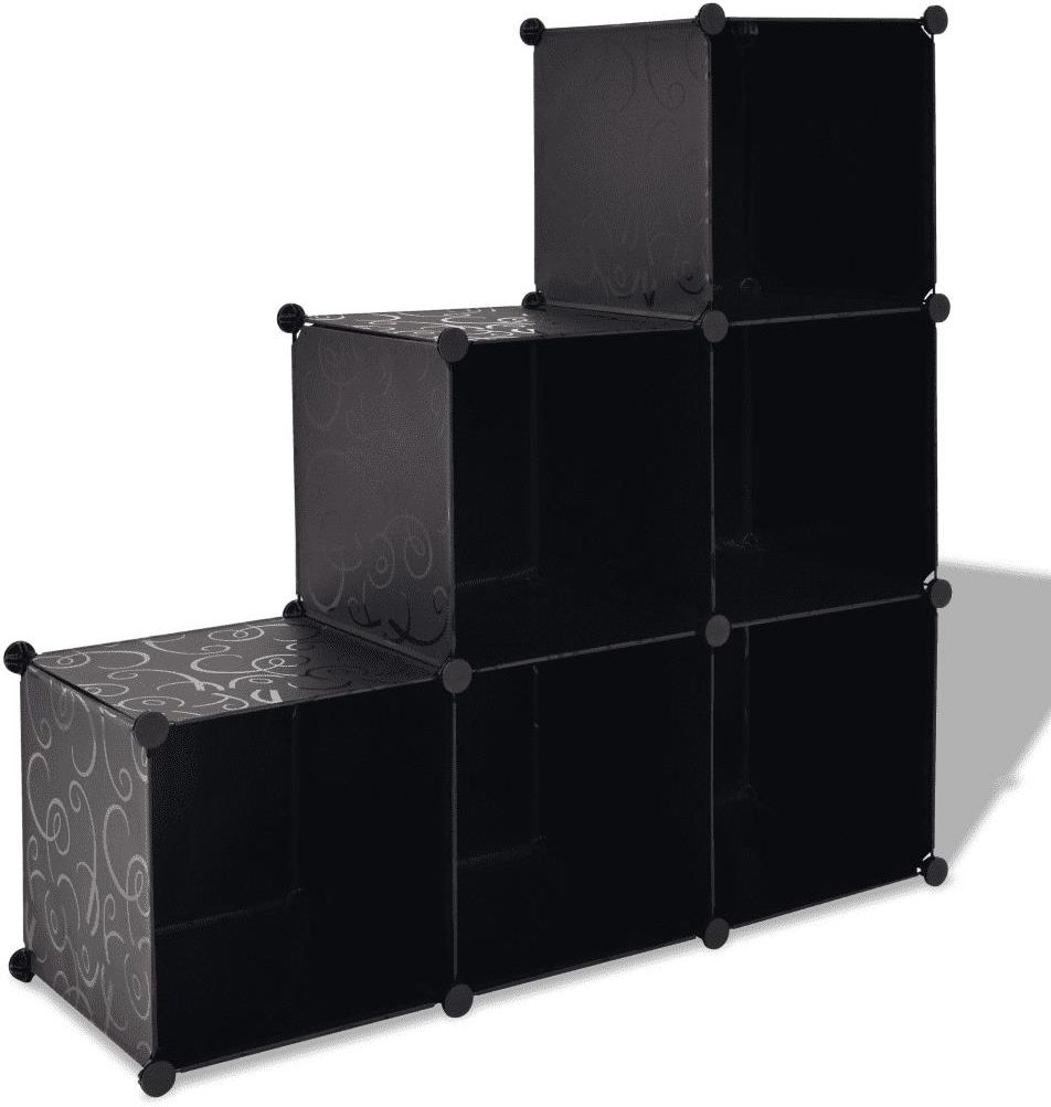 Ta stylowa, wielofunkcyjna szafka z 6 ułożonymi warstwowo sześciennymi przegródkami to praktyczny i dekoracyjny dodatek do Twojego domu. Może być używana jako szafka na buty, regał na książki, komoda, itd. Szafka z kubicznymi przegródkami wykonana jest z wysokiej jakości folii z polipropylenu (PP) i drutu ze stali chromowanej, dzięki czemu jest bardzo wytrzymała. Dzięki użyciu materiału PP jest także łatwa w czyszczeniu. Ponadto można ją zainstalować jako prostokątną szafkę. Regał można ustawić szybko i łatwo. Mebel w kształcie sześcianu jest lekki, więc można go łatwo przenosić. Kolor: czarny Materiał: folia z polipropylenu (PP) i drut ze stali chromowanej Wymiary całkowite: 110 x 37 x 110 cm (szer. x gł. x wys.) Z plastikowymi łączeniami Z 6 przegrodami Prosty montaż OSTRZEŻENIE: aby zapobiec przewróceniu się produktu, musi on zostać przymocowany do ściany za pomocą dołączonego elementu montażowego