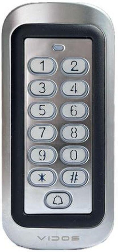 Zamek szyfrowy VIDOS ZS47-MF z czytnikiem RFID Jednostrefowy zamek szyfrowy z czytnikiem zbliżeniowym RFID w standardzie MIFARE, który działa na częstotliwości 13,56 Mhz i obsługuje do 2000 użytkowników. Choć zamek ten działa samodzielnie, ma wejście i wyjście w standardzie Wiegand 24/36, co pozwala na wykorzystanie go jako manipulatora w większym zintegrowanym systemie kontroli dostępu. Urządzenie posiada funkcję kopiowania danych, co umożliwia przenoszenie zapisanych informacji do innego czytnika. Tryby otwierania drzwi: Monostabilny – drzwi otwierają się tylko na określony czas po autoryzacji. Bistabilny – drzwi pozostają otwarte do momentu kolejnej autoryzacji, która je zamyka. Funkcje Hermetyczna, wandaloodporna obudowa ze stopu aluminiowego Wbudowany czytnik kart zbliżeniowych Standard pracy czytnika – MIFARE 13,56 MHz Obsługa 1 strefy Pojemność pamięci: 2000 kart / kodów użytkowników Ustawiany czas otwarcia rygla 1 – 99sek. Obsługuje rygle rewersyjne i zwory elektromagnetyczne ( przekaźnik NO/NC ) Możliwość podłączenia dodatkowego przycisku zwalniania rygla Wbudowany wewnętrzny system alarmowy chroniący przed nieautoryzowanym użyciem Podświetlana klawiatura Zasilanie : 12V DC Pobór mocy w trybie pracy : 60mA Pobór mocy w trybie czuwania : 25mA Zakres temperatur pracy: -20 st.C / +50st.C Maksymalne obciążenie styku przekaźnika NO/NC 1A/12V (1 wyjście przekaźnikowe) Zasięg czytnika RFID : ok. 5cm (zależnie od użytego transpondera) Klasa szczelności: IP65 Tworzenie backupów na drugie urządzenie Wymiary: 58x124x22mm