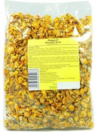 Zioła fix, Dziewanna, kwiat, 50g Zioła fix, Dziewanna, kwiat, 50g to produkt, który odgrywa istotną rolę w codziennej diecie, przynosząc liczne korzyści zdrowotne. Kwiat dziewanny, znany ze swoich właściwości prozdrowotnych, to jeden z tych niezwykłych składników, które mogą znacząco wpłynąć na nasze samopoczucie. Jego stosowanie ma długą historię w ziołolecznictwie, a wiele osób odkrywa na nowo jego zalety, sięgając poń w poszukiwaniu naturalnych metod wsparcia organizmu. Dzięki swojej unikalnej budowie i działaniu, ten kwiat może stać się nieodłącznym elementem zdrowej diety, który warto wprowadzić do codziennego rytuału. Skład produktu W składzie tego produktu znajduje się jedynie jeden składnik – kwiat dziewanny w ilości 100%. Taka prostota składu sprawia, że jest to produkt bardzo przejrzysty dla konsumenta. Kwiaty tego zioła są znane ze swoich właściwości łagodzących, szczególnie w odniesieniu do dróg oddechowych. Zawartość kwiatów w przeliczeniu na zalecaną dzienną porcję wynosi 1,5 g, co gwarantuje skuteczność działania przy regularnym stosowaniu. Czystość składników pozwala na świadomy wybór, idealny dla osób, które poszukują naturalnych rozwiązań w swojej diecie. Opis działania Kwiat dziewanny wykazuje szereg korzystnych właściwości zdrowotnych. Wspiera naturalną obronę organizmu, co jest szczególnie istotne w sezonie przeziębień i infekcji. Jego działanie łagodzące na drogi oddechowe ułatwia oddychanie, co czyni go idealnym wsparciem dla osób z problemami z układem oddechowym. Dodatkowo, kwiat ten wpływa kojąco na jamę ustną, gardło i struny głosowe, co jest nieocenione w przypadku obciążenia głosu lub łaskotania w gardle. Regularne spożywanie naparu z tego zioła może wpływać na poprawę komfortu w obrębie układu oddechowego i jamy ustnej. Kluczowe właściwości dziewanny Kwiat dziewanny ma wiele korzystnych właściwości, które warto poznać: wspieranie układu oddechowego: ułatwia oddychanie i może być pomocny w przypadku problemów z układem oddechowym, działanie łagodzące: wpływa kojąco na jamę ustną, gardło oraz struny głosowe, łagodząc podrażnienia, wspieranie obrony organizmu: działa wspomagająco na naturalne mechanizmy obronne organizmu, właściwości smakowe: charakteryzuje się delikatnym, lekko słodkawym smakiem, co czyni go interesującą propozycją dla osób ceniących naturalne smaki. Opakowanie Produkt dostępny jest w wygodnym opakowaniu o wadze 50g, co czyni go praktycznym rozwiązaniem dla każdego, kto chce cieszyć się naturalnymi właściwościami dziewanny. Dzięki niewielkim wymiarom opakowania, można je z łatwością przechowywać w kuchni czy zabrać ze sobą w podróż. Dziewanna dostępna jest w formie zioła fix, co ułatwia przygotowanie naparu. Zaleca się użycie 1 łyżeczki (około 0,5 g) kwiatów, które należy zalać szklanką wrzącej wody (200 ml) i zaparzać przez 10 minut. Dzięki tym prostym krokom można w pełni skorzystać z dobroczynnych właściwości tego zioła. Właściwości smakowe Kwiat dziewanny charakteryzuje się delikatnym smakiem, który może być nieco słodkawy z subtelną nutą ziołową. Aromat, który wydobywa się podczas parzenia, jest łagodny i przyjemny, co sprawia, że napar z tego zioła staje się prawdziwą przyjemnością dla zmysłów. Jest to napój, który można spożywać na wieczór, przynosząc ukojenie po długim dniu. Kwiat dziewanny może być interesującą propozycją dla osób ceniących naturalne smaki, łącząc zdrowie i przyjemność. Warto pamiętać, że to zioło to nie tylko składnik, ale także element zdrowego stylu życia, który może wspierać organizm w codziennych wyzwaniach. Jego działanie sprawia, że każdy łyk naparu to krok w stronę lepszego samopoczucia. Przechowując produkt w suchym miejscu, w sposób niedostępny dla dzieci, można cieszyć się jego właściwościami przez długi czas. To doskonały wybór dla wszystkich, którzy pragną wzbogacić swoją dietę o naturalne, zdrowe składniki.