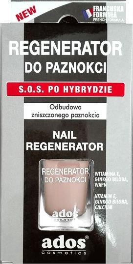 ADOS Regenerator Do Paznokci S.O.S. Po Hybrydzie Przeznaczony do regeneracji paznokci w szczególności zniszczonych i osłabionych po manicure hybrydowym. Dzięki zawartości wapnia i witaminy E wzmacnia i utwardza zniszczoną płytkę paznokcia. Preparat scala wszystkie warstwy paznokcia tworząc powłokę ochronną i niwelując ich rozdwajanie. Ekspresowo poprawi kondycję Twoich paznokci! Zalecamy regularne stosowanie preparatu dla uzyskania jak najlepszych efektów.