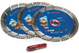 Zestaw trzech tarcz diamentowych Bosch 061599760W Multi Material Expert to wszechstronne narzędzie stworzone z myślą o intensywnej pracy z różnymi materiałami budowlanymi.