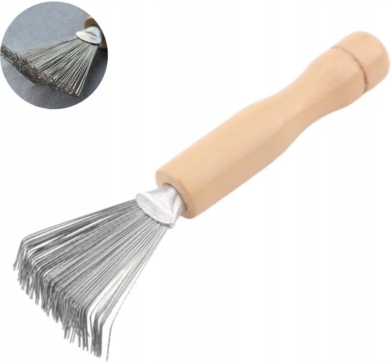 Czyścik do szczotek i grzebieni W dzisiejszych czasach higienia osobista jest bardzo ważna. Jednak zaczyna się ona od czystych przyrządów, które stosujemy na co dzień. Mianowicie stylizujemy włosy przy użyciu różnego rodzaju szczotek, więc warto również zadbać o ich czystość. Grabki do czyszczenia szczotek do włosów to niezbędne narzędzie, które pomaga usunąć nagromadzone zanieczyszczenia, resztki produktów do stylizacji oraz włosy, które zatrzymują się między włóknami szczotki. Idealny do użytku w salonie fryzjerskim, u barbera oraz w domu. Dzięki niemu wyczyścisz nie tylko szczotkę do włosów, grzebień czy szczotkę do brody, ale także szczotkę swojego zwierzaka. Wymiary: długość: 11 cm szerokość : około 4cm Dzięki precyzyjnym, gęsto ułożonym ząbkom,które są specjalnie wygięte,przyrząd do czyszczenia szczotek doskonale radzi sobie z usuwaniem nawet trudnych zabrudzeń, jednocześnie zachowując delikatność wobec włókien szczotki. To rozwiązanie zapewnia nie tylko efektywne czyszczenie, ale także przedłuża żywotność Twojej szczotki do włosów, pozostawiając ją w idealnym stanie do codziennego użytku. Ząbki wykonane są z wysokiej jakości stali nierdzewnej. Zalety zastosowania stali nierdzewnej w oferowanym produkcie: odporność na korozje odporność na wysokie temperatury doskonała wytrzymałość odporność na uszkodzenia mechaniczne łatwa w zachowaniu czystości, co gwarantuje higieniczną pracę Ergonomiczna rączka wykonana jest z drewna, idealnie leży w dłoni zapewniając pewny chwyt i wygodę podczas użytkowania. Idealnie sprawdzi się zarówno w profesjonalnych salonach fryzjerskich, jak i w domowych warunkach. Drewniana rączka zapewnia również elegancki wygląd oraz trwałość.