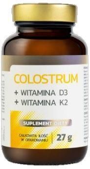 Opis: Siara bydlęca jest pierwszym mlekiem wytwarzanym przez gruczoły sutkowe po urodzeniu. Colostrum to kompleks całej gamy (ponad 250) składników aktywnych, cenny ze względu na wysoką zawartość substancji biologicznie czynnych, zwłaszcza immunoglobulin IgG, laktoferyny, laktoperoksydazy i innych aktywnych peptydów. Dzięki delikatnej technologii produkcji (głębokie mrożenie – tzw. liofilizacja) zostaje zachowany maksymalny efekt użytego surowca. Witamina D wspiera prawidłowe funkcjonowanie układu odpornościowego. Pomaga w utrzymaniu prawidłowych funkcji mięśni, wpływa na wchłanianie i wykorzystanie wapnia z pożywienia oraz na jego prawidłowe stężenie we krwi. Witaminy D i K wspierają dobrą kondycję i utrzymanie zdrowych kości. Witamina K ma wpływ na krzepnięcie krwi Zalecany sposób użycia: 2 kapsułki dziennie (najlepiej pić wieczorem przed posiłkiem, popijając odpowiednią ilością płynu). Przechowywanie: Produkt przechowywać w suchym miejscu, w temperaturze 5-25°C. Chronić przed światłem. Suplement diety powinien być przechowywany w sposób niedostępny dla małych dzieci. Składniki suplementu diety: Colostrum 430 mg Witamina D3 12,50 ug Witamina K2 MK7 50 uG skład kapsułki: żelatyna. Podmiot odpowiedzialny: DONCAL SP. Z O.O. Nie należy przekraczać zalecanej porcji do spożycia w ciągu dnia. Zrównoważona i zróżnicowana dieta oraz zdrowy styl życia są podstawą zapewnienia prawidłowego funkcjonowania organizmu. Suplement diety nie może być stosowany jako substytut zróżnicowanej diety.