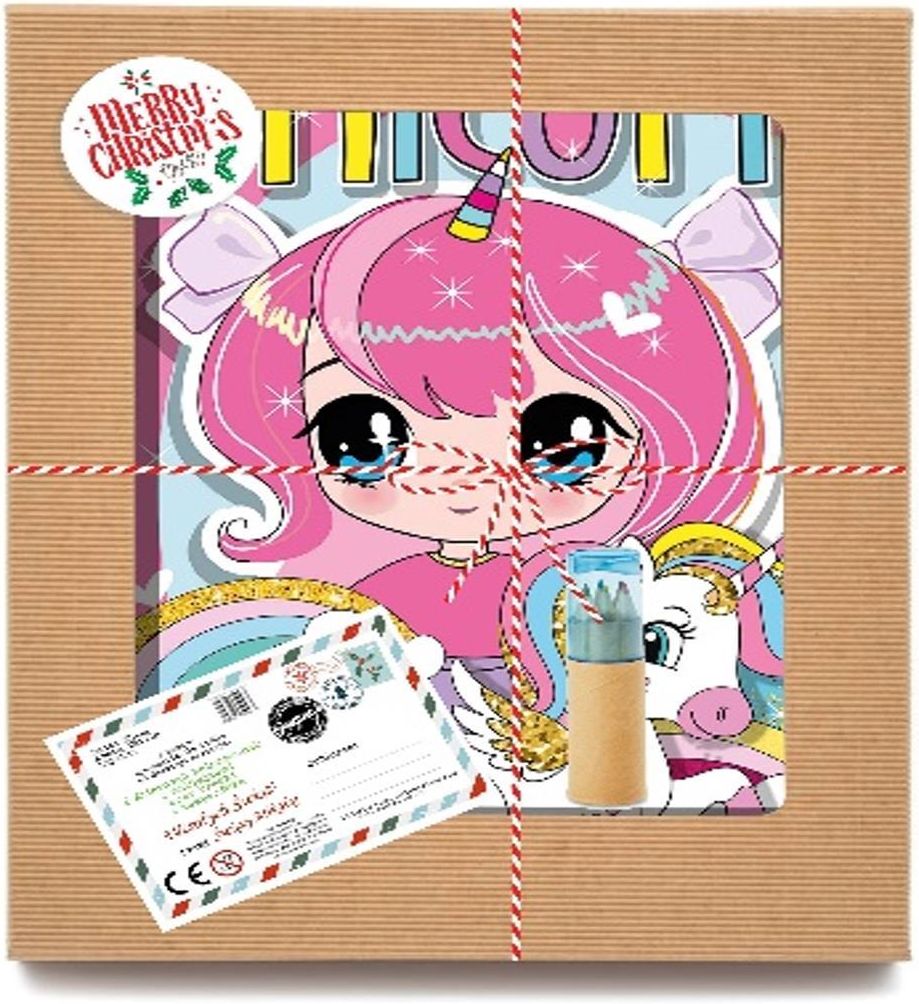 Podaruj dziecku paczkę od Świętego Mikołaja! Piękne pudełko prezentowe, opatrzone ręcznie wywiązywaną kokardką, zawiera 6 różnych kolorowanek z naklejkami oraz zestaw 6 kredek w tubce z temperówką. Do prezentu załączona jest kartka od Świętego Mikołaja, na której wystarczy wpisać imię dziecka, by spersonalizować podarunek i sprawić dziecku radość. Uśmiech dziecka gwarantowany i bezcenny! Zestaw: 6 kolorowanek A4 z naklejkami Kredki z temperówką Karta świąteczna od Mikołaja Opakowanie karton ozdobny z okienkiem Kokarda świąteczna