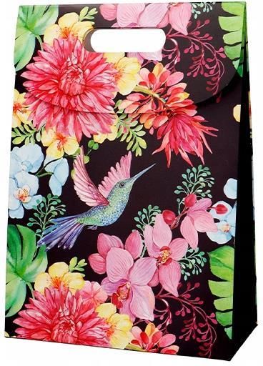 Torebka upominkowa z rzepem Kolibry o wymiarach 33 x 12 x 26 cm.