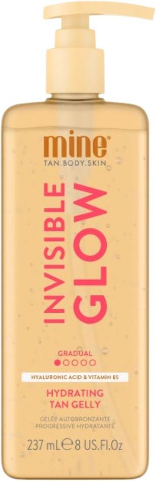 MineTan - INVISIBLE GLOW - Hydrating Tan Gelly - Nawilżający żel samoopalający - Gradual - 237 ml INVISIBLE GLOW - Hydrating Tan Gelly marki MineTan. Żel do ciała. Posiada przezroczystą formułę, która szybko wchłania się w naskórek. Nie wymaga spłukiwania dzięki czemu jest niezastąpiona kiedy nie mamy zbyt dużej ilości czasu na pielęgnację a chcemy cieszyć się efektem spektakularnej opalenizny na skórze. Zawiera w sobie naturalne DHA i specjalne pigmenty, który pozwalają uzyskać efekt delikatnej, złocistej opalenizny. Dodatek kwasu hialuronowego oraz witaminy B5 intensywnie nawilża oraz dogłębnie pielęgnuje skórę. Pierwsze widoczne efekty zaczynają pojawiać się już godzinę od czasu aplikacji. Następnie efekt opalania zacznie się stopniowo pogłębiać by swój maksymalny odcień osiągnąć 8 godzin od czasu aplikacji. W przypadku chęci osiągnięcia delikatniejszych efektów zaleca się spłukać go ze skóry wcześniej. Żel MineTan dostępny jest o pojemności 237 ml. MineTan żel. Mocno nawilża. Pierwsze efekty daje po 1 godzinie. Daje efekt delikatnej, złocistej opalenizny. Atrybuty Sposób użycia - Nałóż na czystą, wypeelingowaną wcześniej skórę, używając dłoni lub rękawicy do aplikacji samoopalacza.Nałóż 1-2 pompki na każdą część ciała i dokładnie rozprowadź okrężnymi ruchami.Użyj mniejszej ilości produktu na łokciach, kolanach i kostkach.Umyj dłonie po aplikacji.Nie wymaga spłukiwania. Stosuj codziennie, aby zbudować lub przedłużyć opaleniznę. Ostrzeżenia - Produkt przeznaczony do użytku zewnętrznego. Unikać kontaktu z oczami i błonami śluzowymi. W przypadku kontaktu przemyć wodą. Produkt może wywoływać reakcje alergiczne. W razie wystąpienia podrażnienia zaprzestać używania i skonsultować się z lekarzem. Przechowywać w miejscu niedostępnym dla dzieci. Pojemność (ml) - 237 PAO termin trwałości - 6M