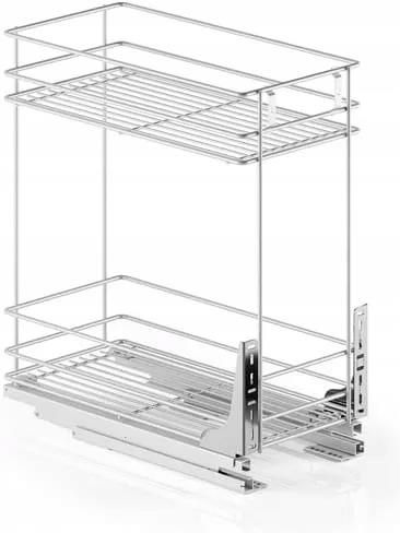 Kosz Cargo dwupoziomowy dolny na prowadnicy typu tandem 300mm linia PRO Srebrny - W-2331M-300 P22 Cechy kosza cargo Nomet: Kod producenta: W-2331M-300 Producent: Nomet Ilość półek: 2 Kolor: srebrny P22 Do szafki o szerokości zewnętrznej 300 mm Wysokość kosza: 545 mm Szerokość kosza: 250 mm Głębokość kosza: 480 mm Pełny wysuw Miękki domyk Obciążenie: do 30kg Możliwość zastosowania przegrody kosza Mocowanie: dolne Skład kompletu: Prowadnice typu tandem Stelaż z półkami Instrukcja montażu Zestaw akcesoriów niezbędnych do montażu Kosz producenta NOMET W-2331M-300 przeznaczony jest do montażu w szafkach o szerokości zewnętrznej, która wynosi 300 mm. Wyposażony jest w dwie druciane półki ze stalowego drutu w kolorze srebrnym. W zestawie znajdują się prowadnice typu tandem mocowane do dna korpusu. Maksymalne obciążenie wynosi 30 kg. Wyposażone są w funkcję pełnego wysuwania, oraz cichego zamykania szafki. Takie rozwiązanie znacznie podnosi komfort użytkowania kosza.