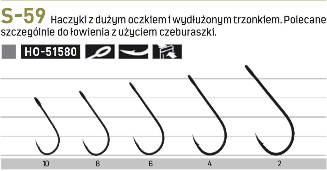 OWNER HACZYK S-59 DUŻE OCZKO #2 / 6 SZT. Inżynierowie Ownera postanowili znacznie powiększyć oczko tworząc tym samy idealny hak do czeburaszki. Duże oko tworzy z obciążeniem luźny przegub, dzięki któremu przynęta na haku zachowuje się dużo bardziej naturalnie. Sam hak został wykonany z najwyższej jakości wysoko węglowej, japońskiej stali, która nadaje mu wytrzymałość oraz ostrość. Model Owner S-59 nadaje się również idealnie do zbrojenia malutkich pstrągowych czy okoniowych wahadłówek oraz woblerków. Opakowanie: 6 szt. Rozmiar haka: 2 Duże oczko zapewnia płynną pracę w zestawie z czeburaszką. Haczyki S-59 są super ostre, wytrzymałe oraz odporne na stępienia - wyprodukowane przez jedną z najlepszych firm w Japonii.