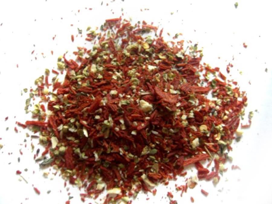 składniki: pomidory grys 60 %,papryka zielona 5 %,papryka czerwona 5 %,bazylia,cząber,kozieradka mielona.