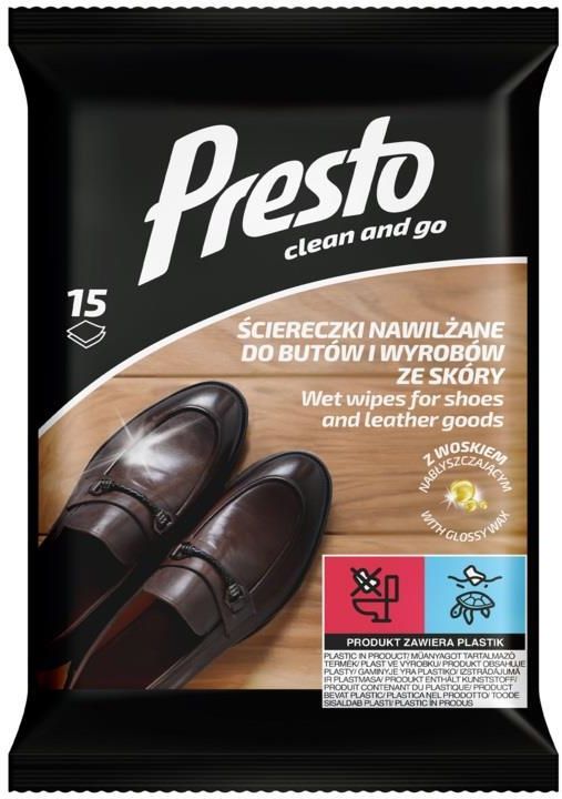 PRESTO Clean and Go Ściereczki nawilżane do butów i wyrobów ze skóry, 15 szt. - !!! 24h WYSYŁKA !!! Łęczna