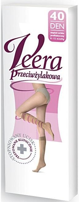 Najwyższej jakości eleganckie podkolanówki Veera ze stopniowanym uciskiem. Poprawiają krążenie i perfekcyjnie modelują nogi. Stosowane w profilaktyce i przy pierwszych problemach z krążeniem. Nadają lekkości nawet najbardziej zmęczonym nogom. Przynoszą szybką i skuteczną ulgę w przypadku pierwszych objawów osłabionego krążenia, takich jak: obrzęk, zmęczenie nóg, uczucie ciężkości nóg, pajączki (pękające naczynka). Dlaczego warto wybrać podkolanówki marki Veera? bo wyglądają jak klasyczne produkty, a znacznie się różnią właściwościami: przynoszą ulgę zmęczonym nogom poprawiają krążenie krwi zapobiegają pierwszym zmianom żylakowym zapobiegają pojawianiu się pajączków perfekcyjnie modelują i wyszczuplają sylwetkę sprawiają, że po całym dniu Twoje nogi są nadal lekkie Właściwości Delikatność: 40 DEN Skład 78 % Poliamid, 22 % Elastan Ucisk w okolicach kostki 8 – 12 mmHg Rozmiar dobieramy korzystając z tabeli rozmiarów (powyżej). Zgodnie z ustawą o prawach konsumenta dot. art. 38 po otwarciu opakowania i przymiarce produktu, ze względu na ochronę zdrowia oraz higienę – produkt NIE PODLEGA ZWROTOWI.