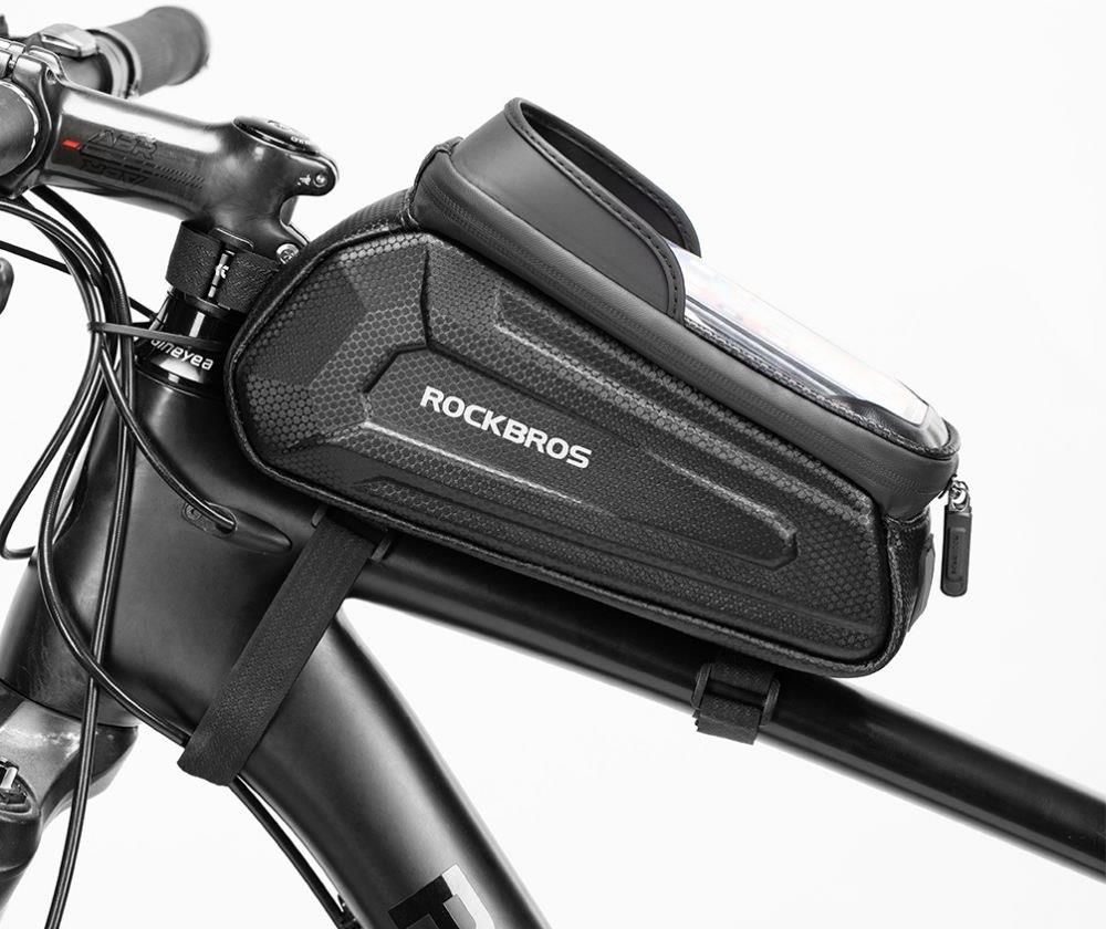 Wodoodporna torba rowerowa marki Rockbros to idealne akcesorium dla każdego fana 2 kółek. Sakwa montowana jest na ramę roweru, która jest jednocześnie podręcznym schowkiem oraz pokrowcem na naszego smartfona. Wyposażony w przezroczyste okienko pokrowiec umożliwia korzystanie z telefonu (o wymiarach: 18x9cm) w podróży, jako nawigacji czy też odtwarzacza muzycznego, bo torba posiada także wyjście na słuchawki. Wszystko to bez konieczności postoju. Uchwyt wykonany jest z dbałością o szczegóły z wysokiej klasy matowego i twardego PC, dzięki czemu podczas uderzenia czy upadku roweru na bok, nie musisz się martwić o swoje gadżety. CECHY PRODUKTU: - 100% Oryginalny - Zapakowany w oryginalne opakowanie - Wykonany z twardego tworzywa PC - Montowany do ramy na regulowane szelki - Wymiary kieszeni na telefon: 18x9cm - Wymiary zewnętrzne: 24x14x10cm - Pojemność: 1.7L ZESTAW ZAWIERA: 1 x Etui Rockbros