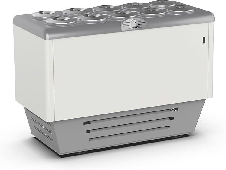 NOWY włoski konserwator do lodów Dolce Vita 10 New o pojemności 10 kuwet (∅=20, h=25 cm) z miejscem na przechowywanie 10 kuwet zapasowych. Witryna wyposażona w kółka, bardzo prosta w obsłudze i utrzymaniu w czystości. Mrożenie statyczne wspomagane wentylatorem Parametry techniczne: - pojemność: 10 …