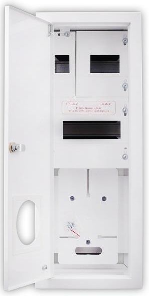 Rozdzielnice nn RW są konstrukcjami stanowiącymi bezpieczną i estetyczną obudowę dla montowania w nich zespołów bezpiecznikowych typu "S", liczników jedno i trójfazowych oraz urządzeń sterujących. Nadają się do montowania wewnątrz budynków. Blacha stalowa o grubości 0,8mm malowana proszkowo na kolor biały. Do malowania używana jest najwyższej jakości farba poliestrowo-epoksydowa. Sposób montażu Do montowania w ścianie. Parametry elektryczne - napięcie znamionowe izolacji: Ui=500V - stopień ochrony: IP20 Zaciski zerowe - szyna mocująca TH35 Liczba modułów 14 Tablica licznikowa 1f Wymiary: 610x210x170